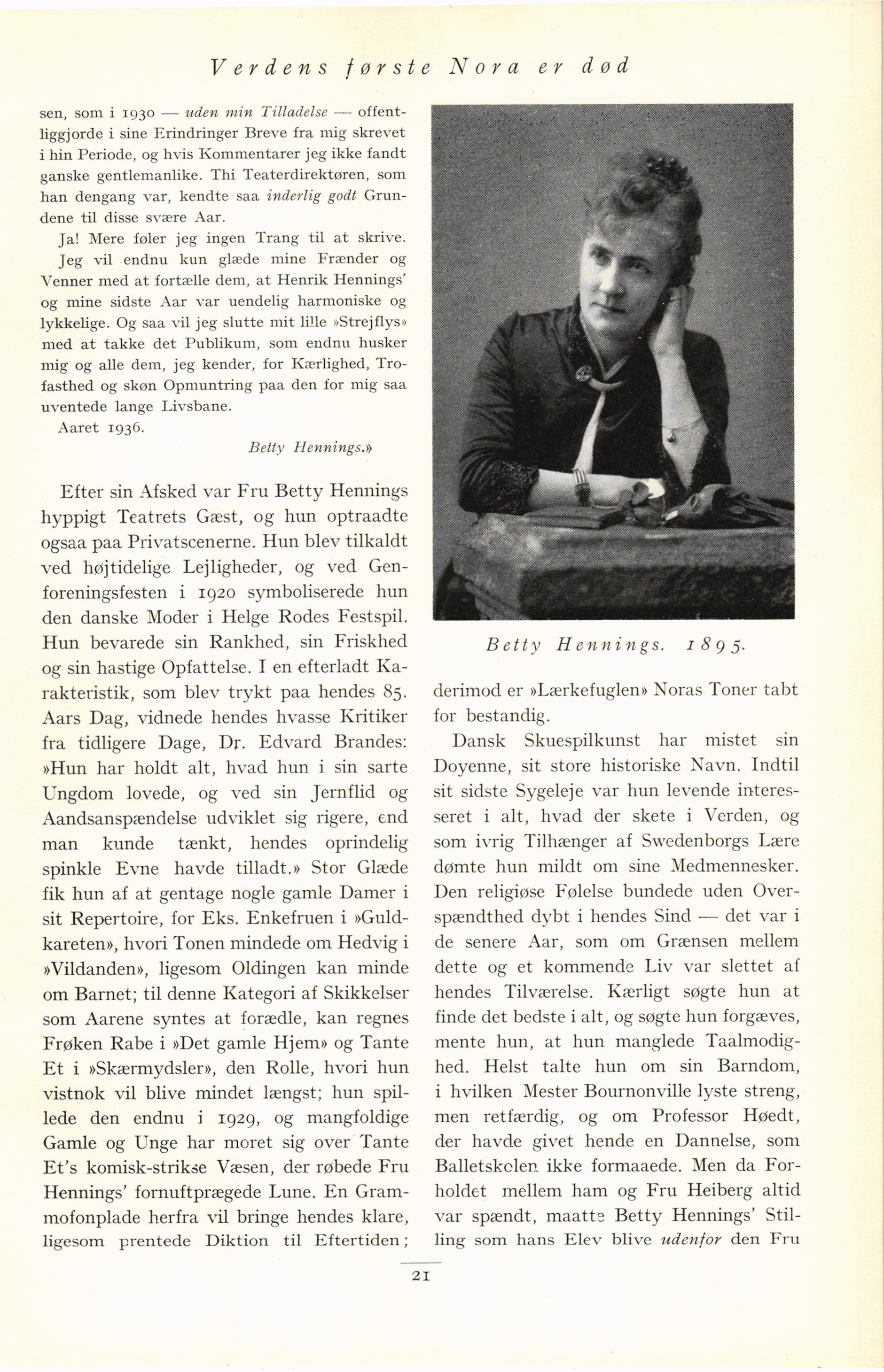 Full resolution (JPEG) - On this page / på denna sida - Första häftet - Verdens første Nora er død — Betty Hennings f. Schnell (1850—1939). Af Robert Neiiendam