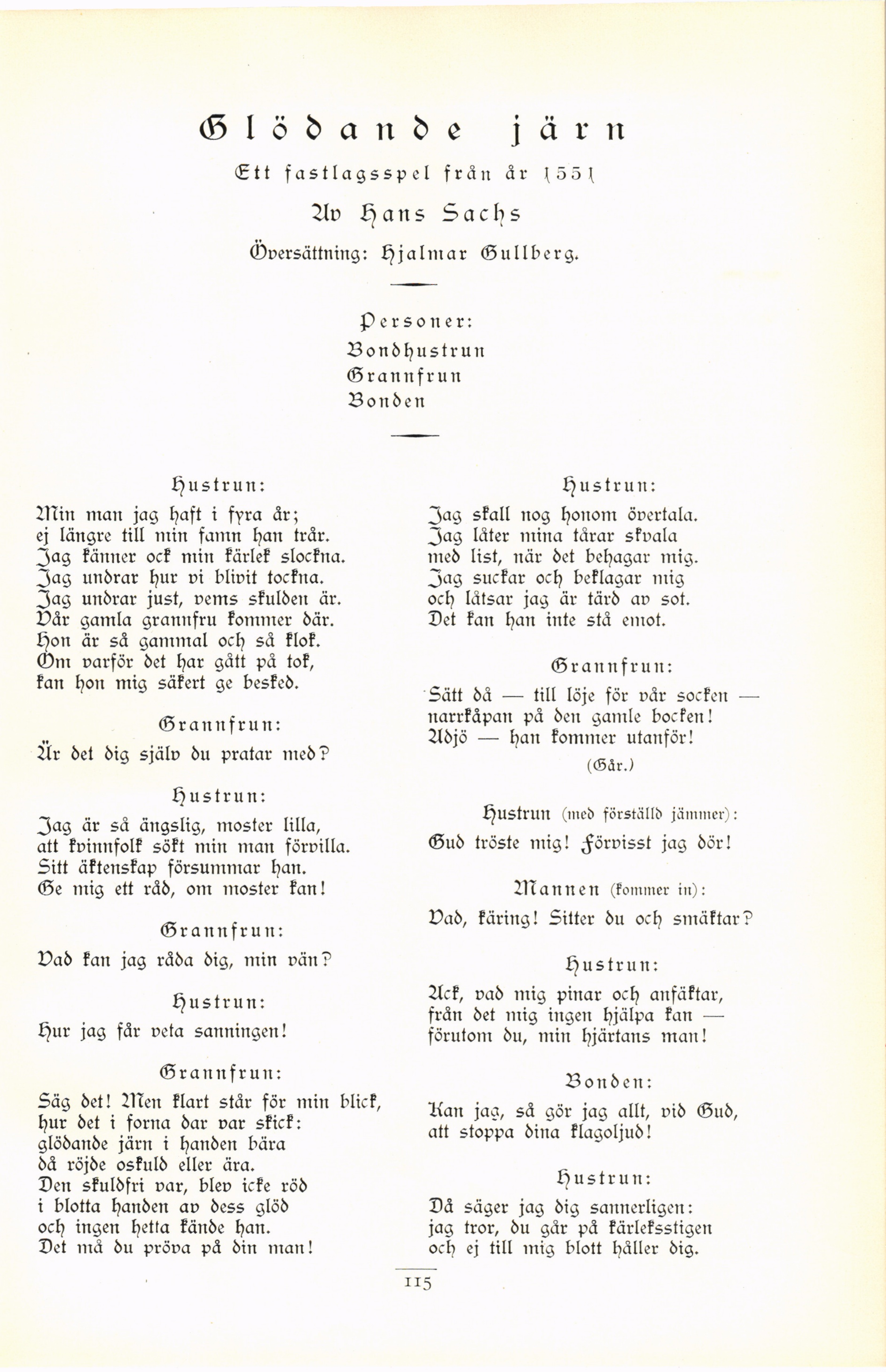 Full resolution (JPEG) - On this page / på denna sida - Tredje häftet - Glödande järn. Ett fastlagsspel från år 1551. Av Hans Sachs. Översättning: Hjalmar Gullberg