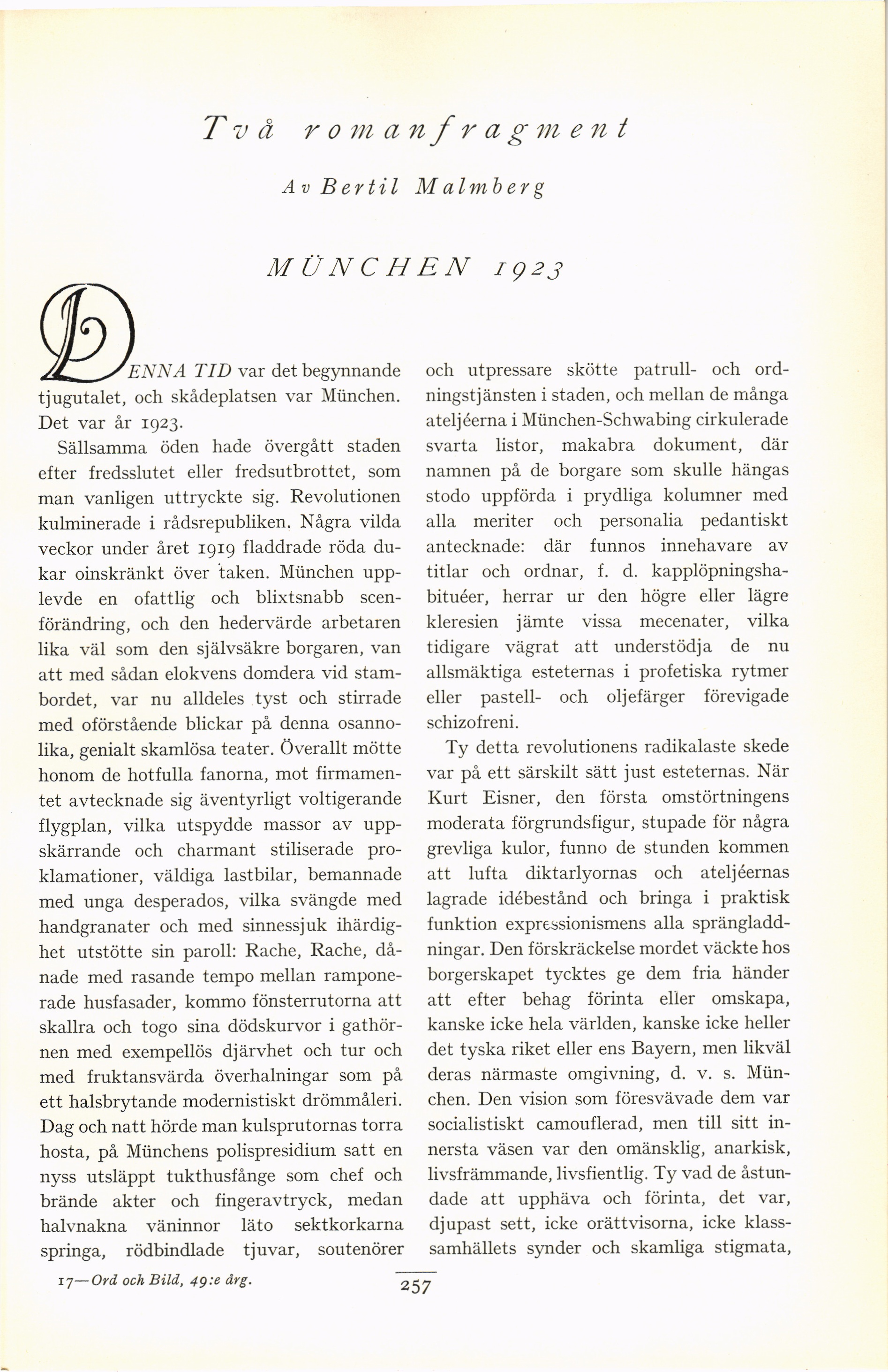 Full resolution (JPEG) - On this page / på denna sida - Sjätte häftet - Två romanfragment. Av Bertil Malmberg - München 1923