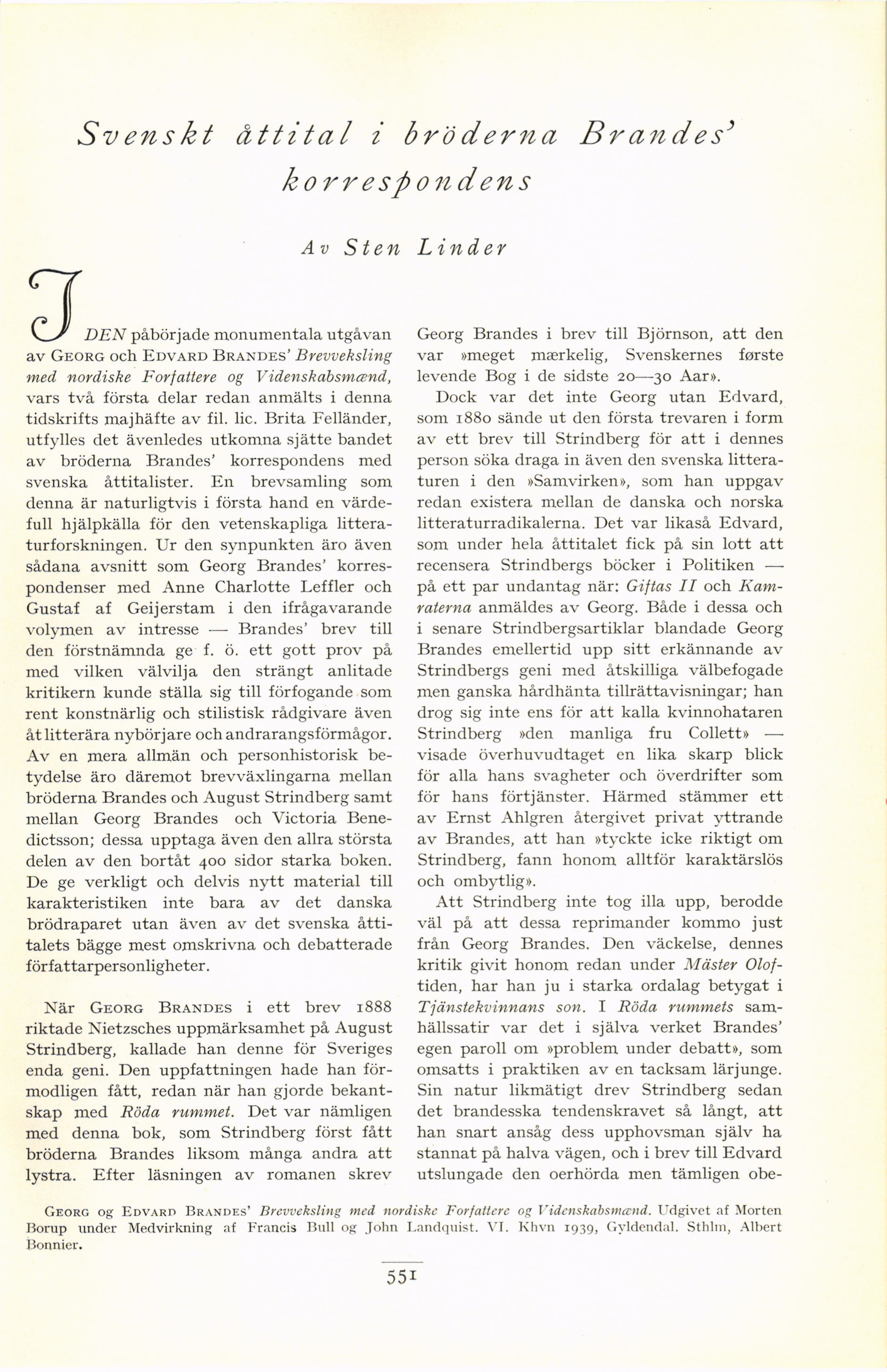 Full resolution (JPEG) - On this page / på denna sida - Tolfte häftet - Svenskt åttital i bröderna Brandes’ korrespondens. Av Sten Linder