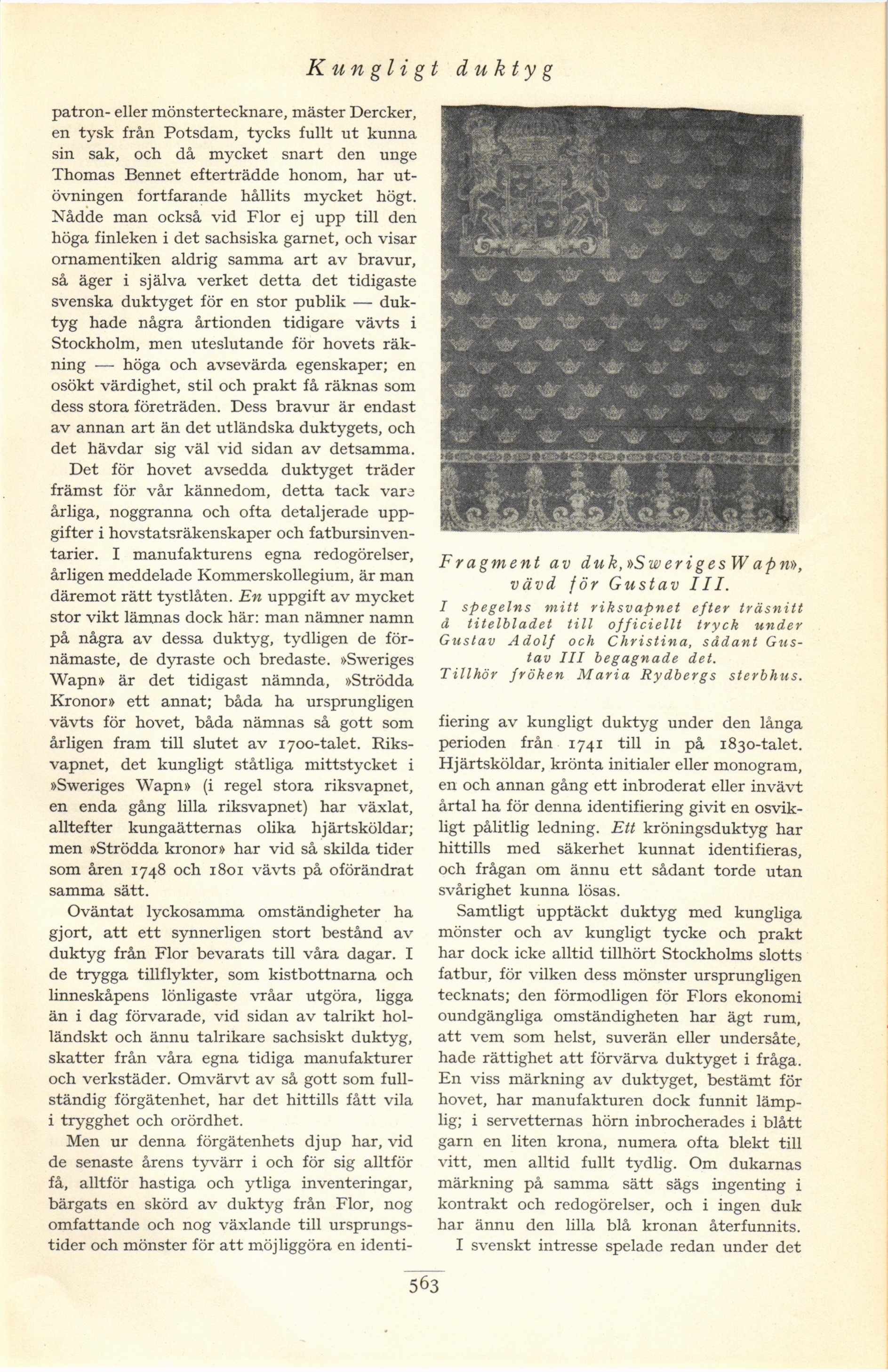 Full resolution (JPEG) - On this page / på denna sida - Tolfte häftet - Kungligt duktyg från »Flors manufactorie» i Hälsingland. Av Elisabeth Thorman