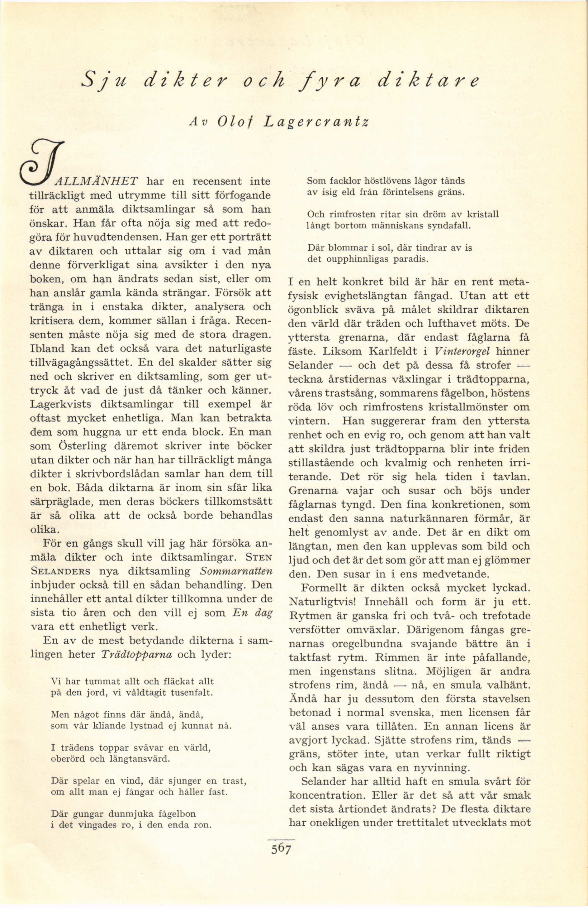 Full resolution (JPEG) - On this page / på denna sida - Tolfte häftet - Sju dikter och fyra diktare. Av Olof Lagercrantz