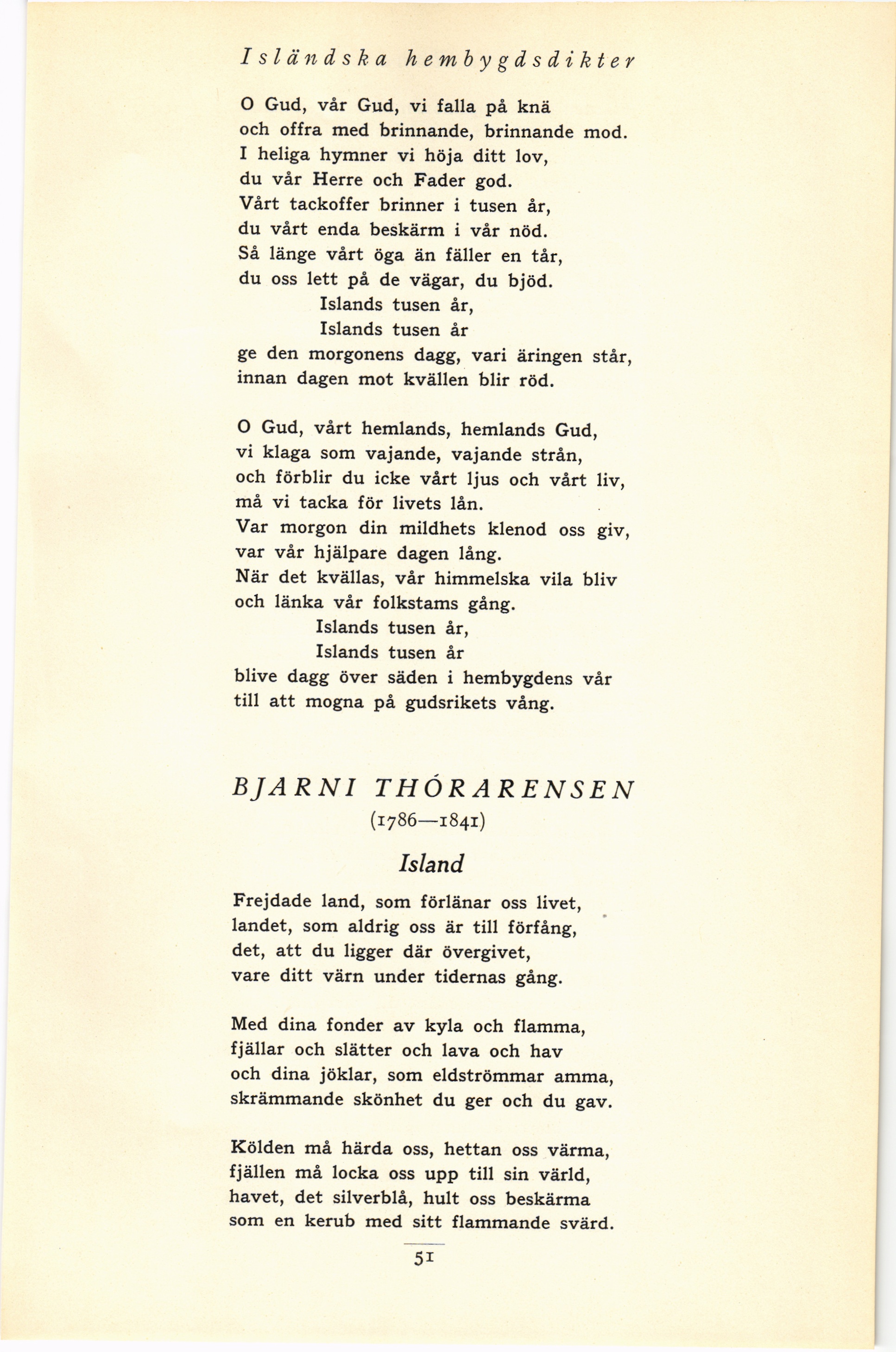 Full resolution (JPEG) - On this page / på denna sida - Första häftet - Isländska hembygdsdikter. Till svenska av Ane Randel - Mattías Jochumsson: Lofsång - Bjarni Thórarensen: Island