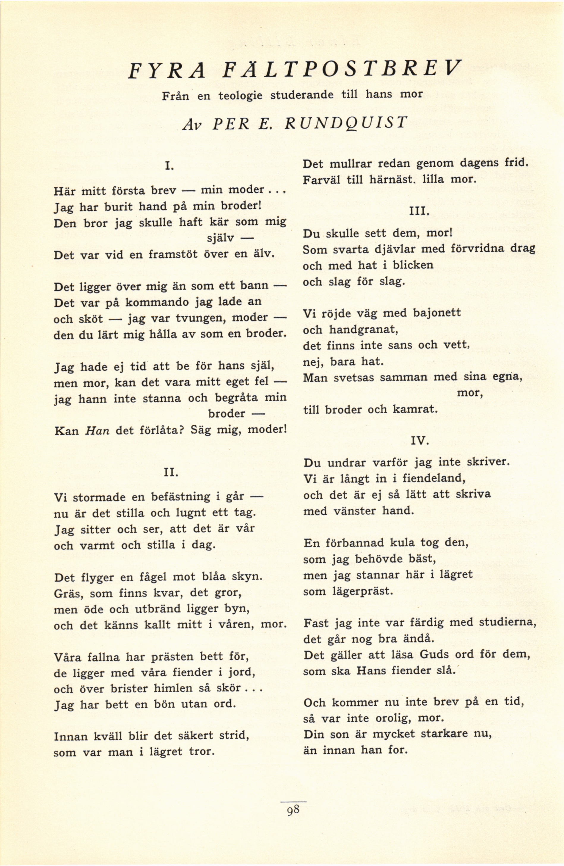 Full resolution (JPEG) - On this page / på denna sida - Andra häftet - Fyra fältpostbrev. Från en teologie studerande till hans mor. Av Per E. Rundqvist