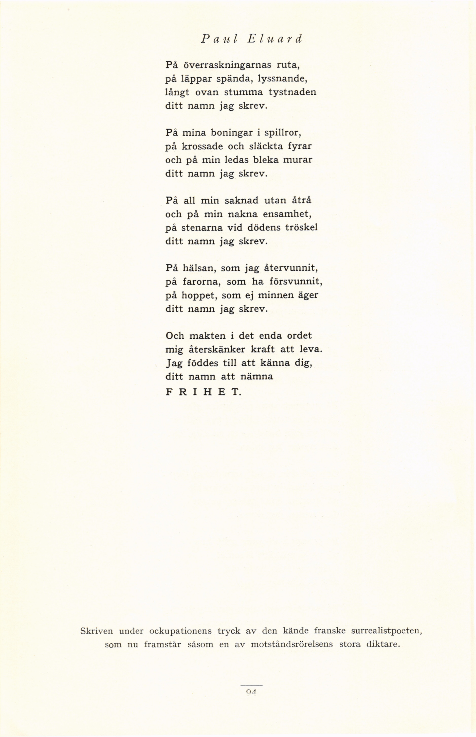 Skriven under ockupationens tryck av den kände franske surrealistpocten,