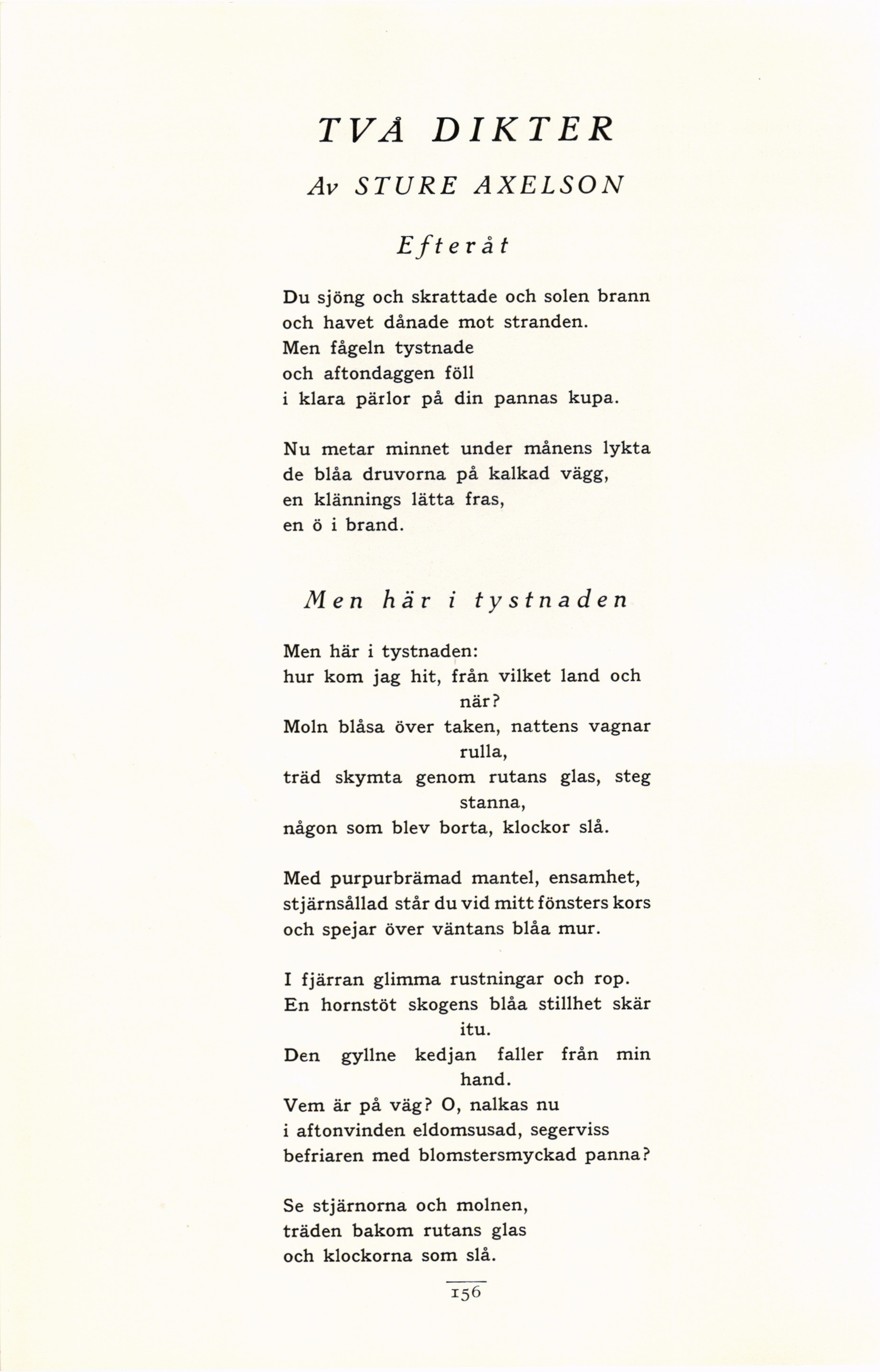 Full resolution (JPEG) - On this page / på denna sida - Fjärde häftet - Två dikter. Av Sture Axelson - Efteråt - Men här i tystnaden