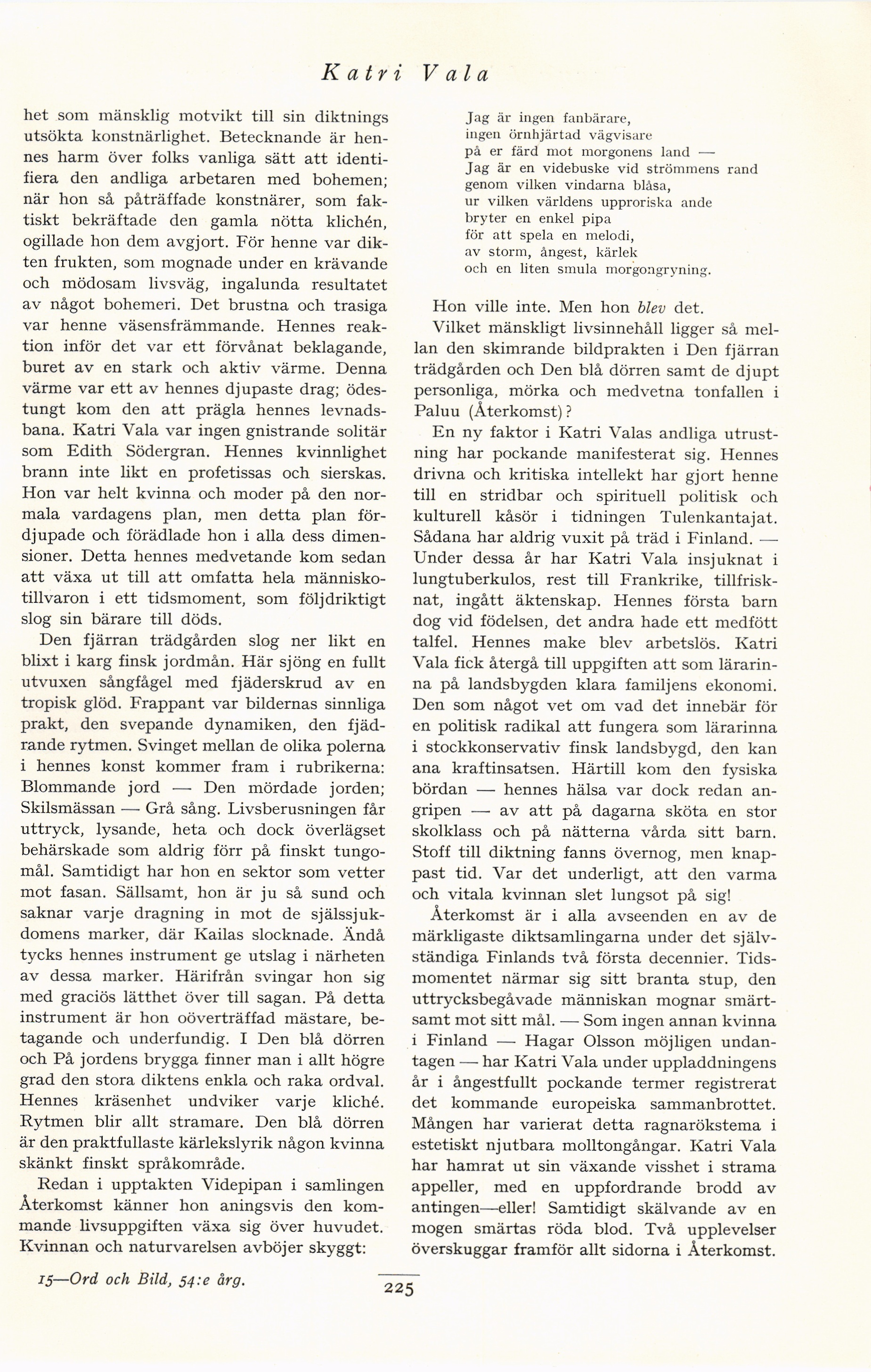 levnadsbana. Katri Vala var ingen gnistrande solitär