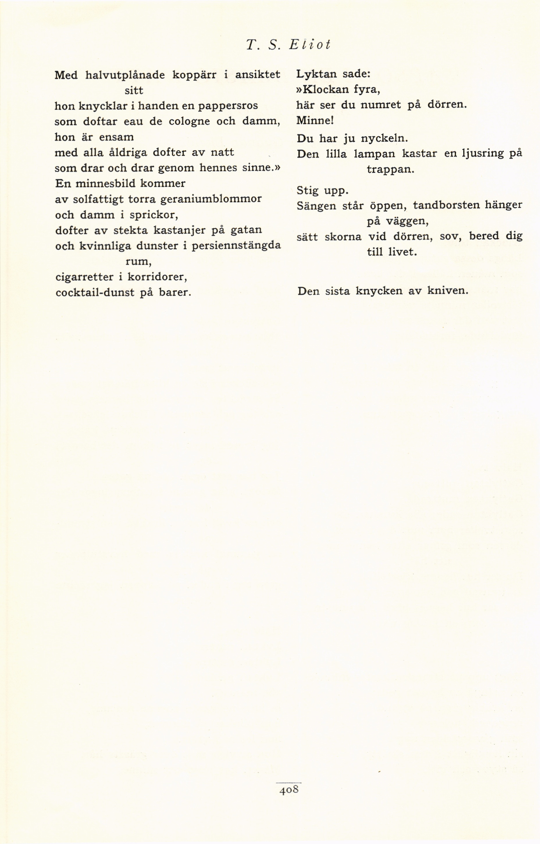 Full resolution (JPEG) - On this page / på denna sida - Nionde häftet - Rapsodi en blåsig natt. Av T. S. Eliot. Svensk tolkning av Gunnar Ekelöf