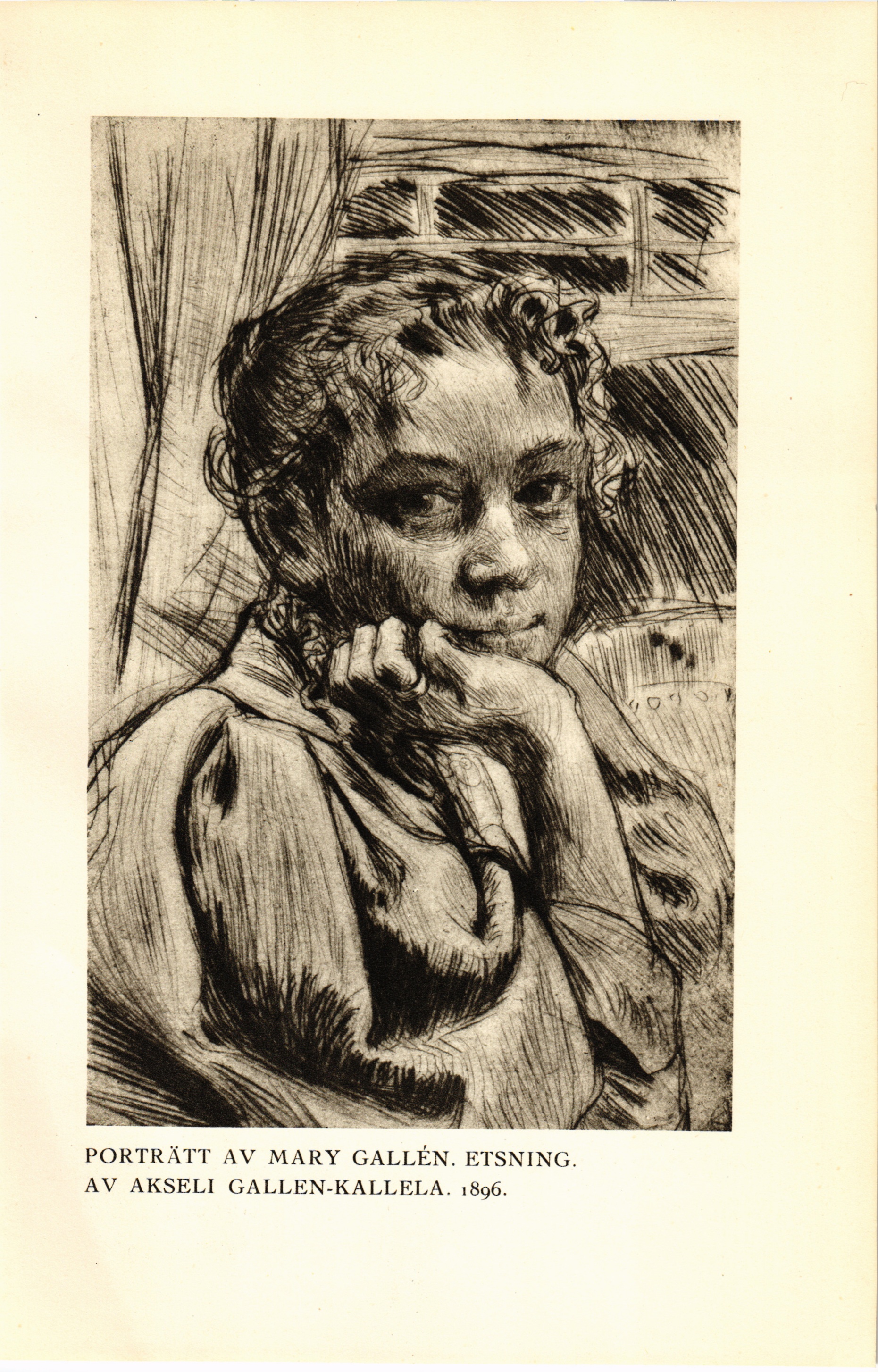 Full resolution (JPEG) - On this page / på denna sida - Tionde häftet - Porträtt av Mary Gallén. Etsning. Av Akseli Gallen-Kallela. 1896