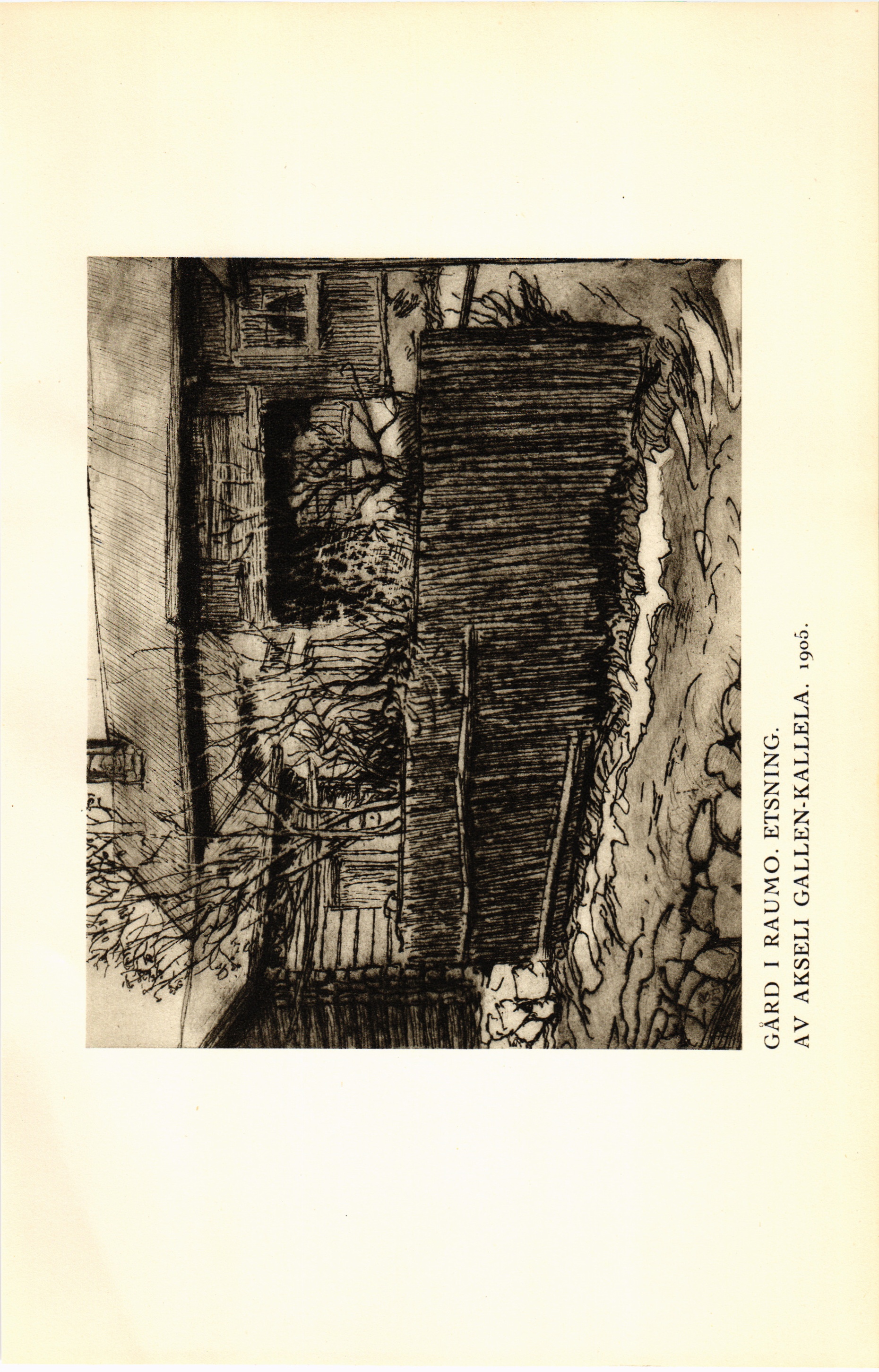 Full resolution (JPEG) - On this page / på denna sida - Tionde häftet - Gård i Raumo. Etsning. Av Akseli Gallen-Kallela. 1905