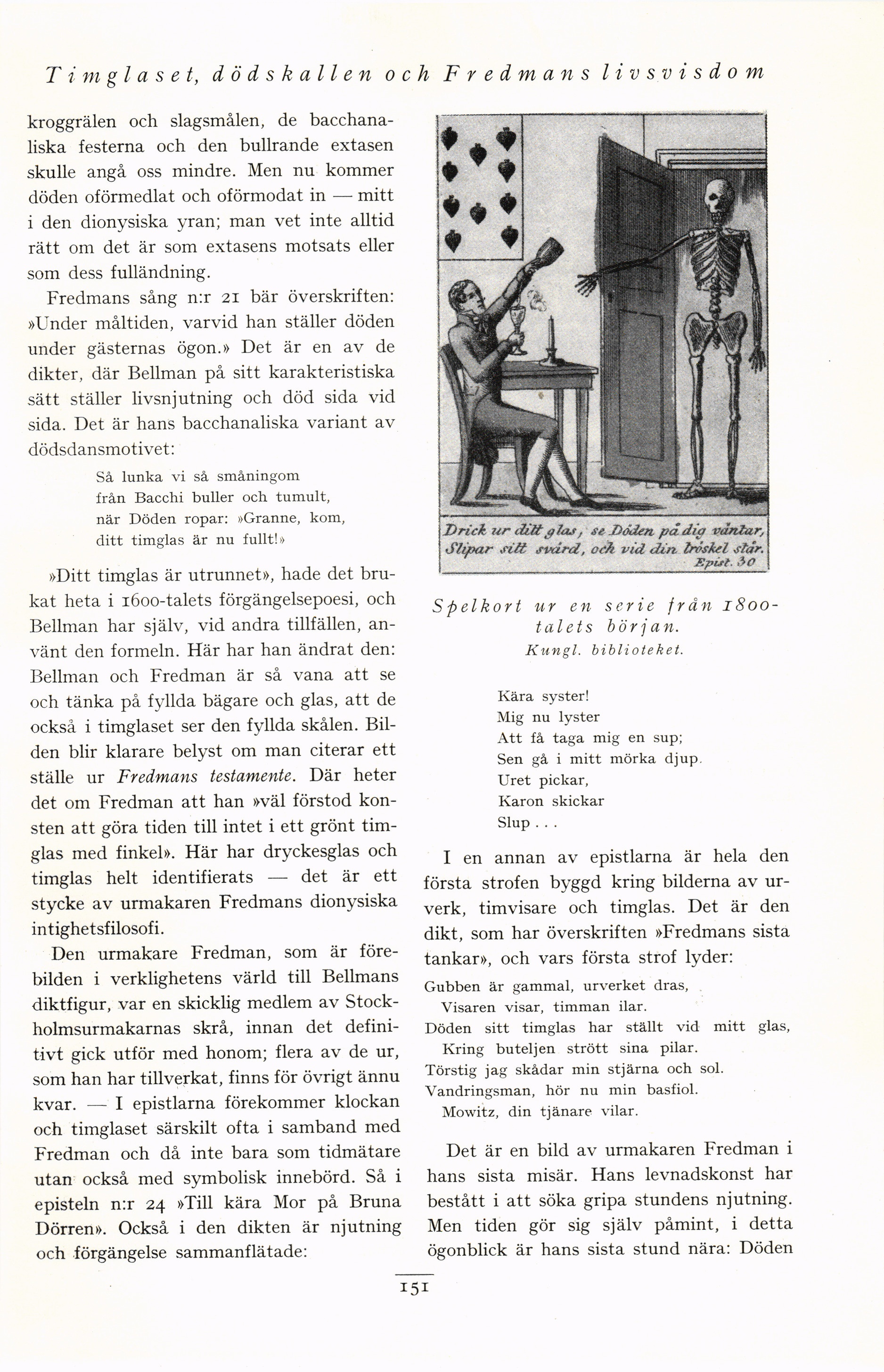 Full resolution (JPEG) - On this page / på denna sida - Fjärde häftet - Timglaset, dödskallen och Fredmans livsvisdom. Av Carl Fehrman