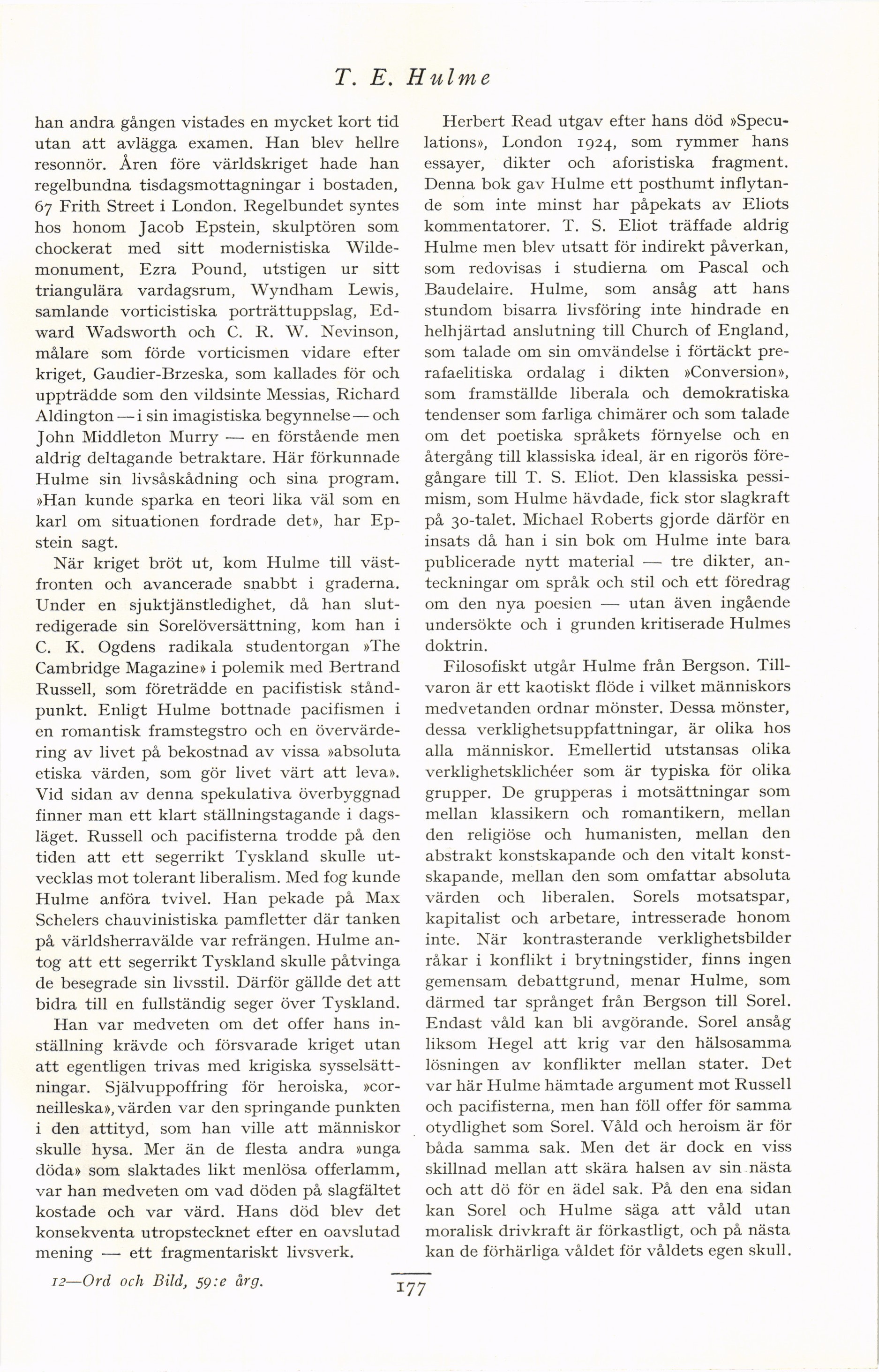 Full resolution (JPEG) - On this page / på denna sida - Fjärde häftet - T. E. Hulme. Av Teddy Brunius