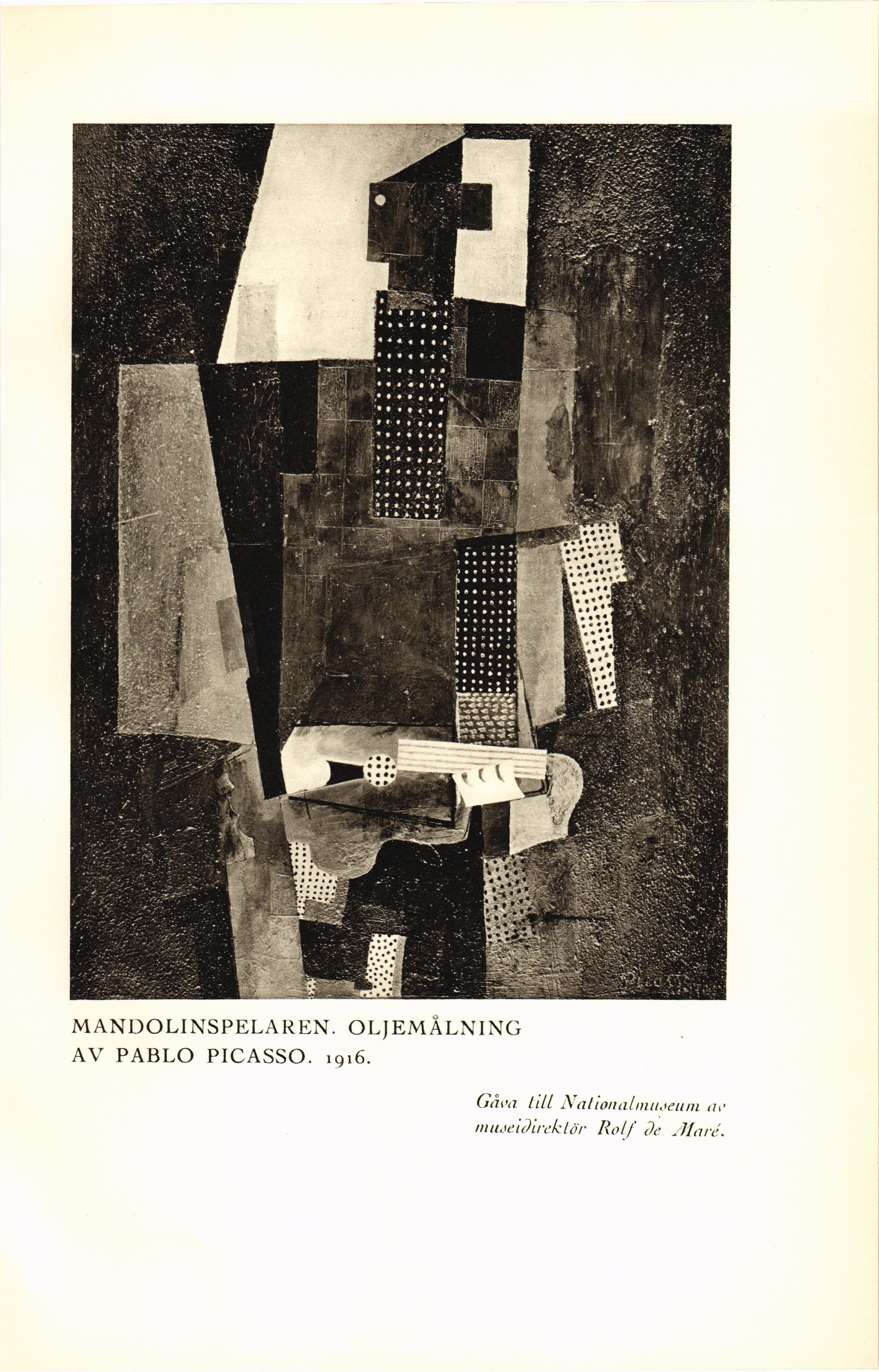 Full resolution (JPEG) - On this page / på denna sida - Nionde häftet - Mandolinspelaren. Oljemålning av Pablo Picasso. 1916