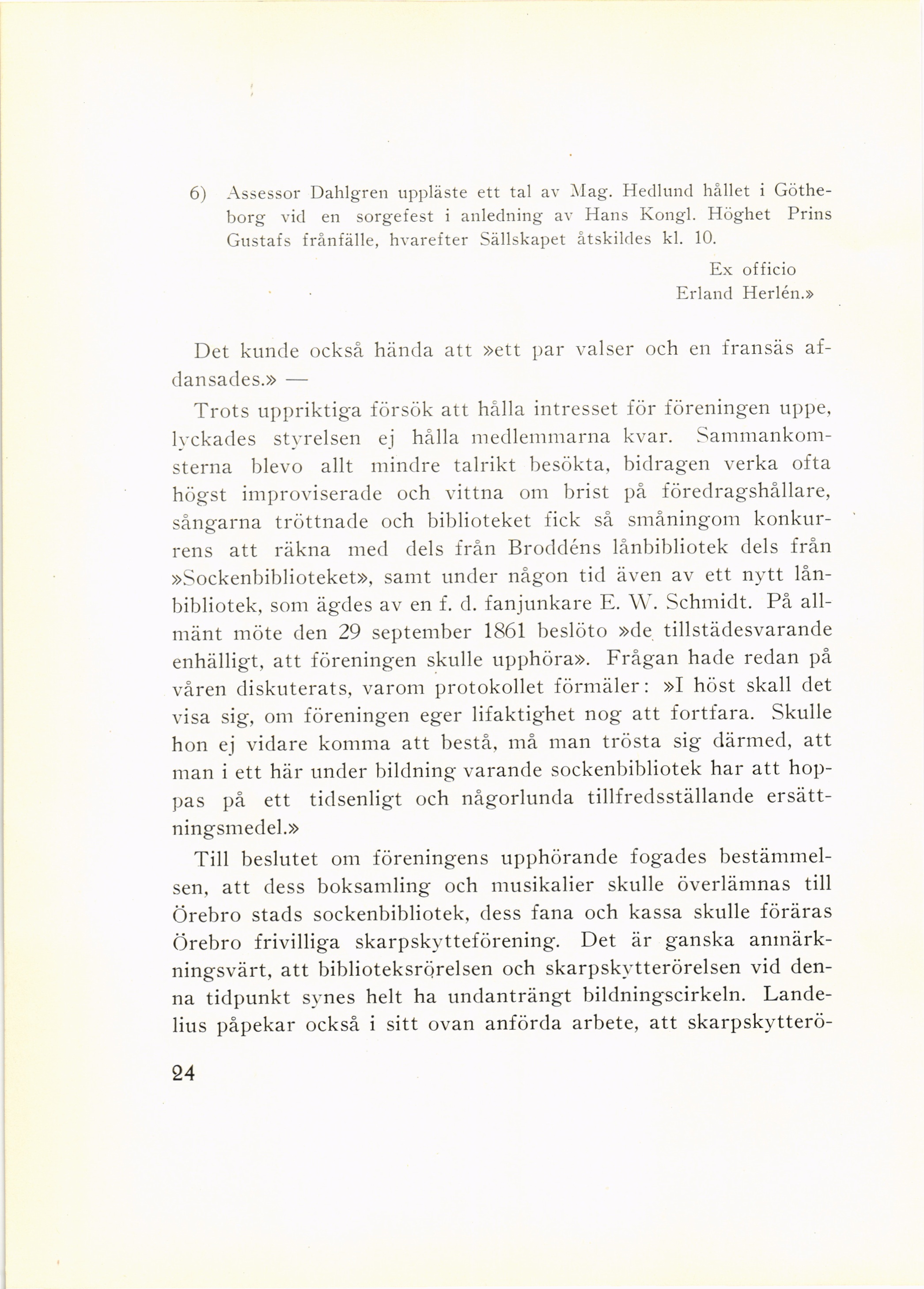 6) Assessor Dahlgren uppläste ett tal av Mag. Hedlund hållet i