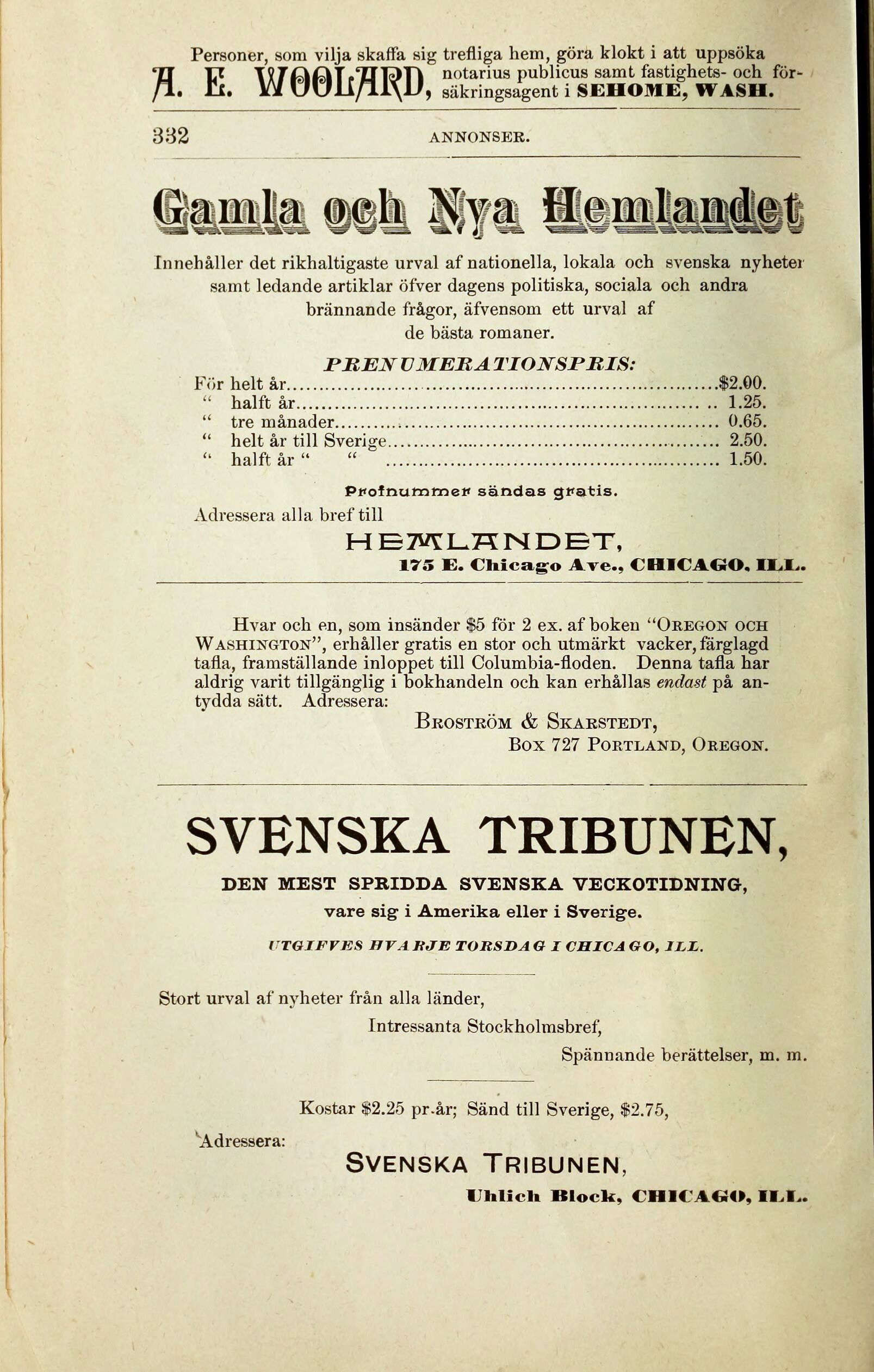 Kostar $2.25 pr.år; Sänd till Sverige, $2.75,