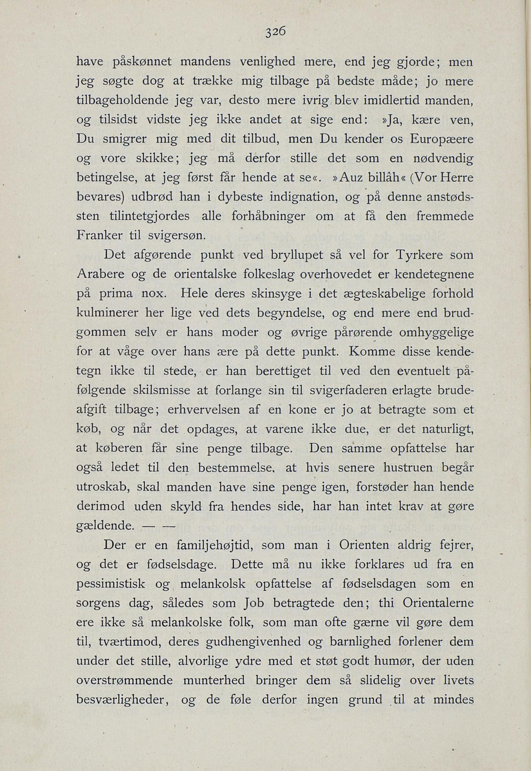 Full resolution (JPEG) - On this page / på denna sida - Dagligt liv i en tyrkisk by. — Påvirkning fra Europa. — Softaerne. — Tyrkiske rangforhold. — Civile og militære. — Almindelige højtider: bryllup og begravelse. — Tyrkerne som ægtemænd. — Hvad man lever af? orientalsk ædruelighed. — Religiøse fester i Ramazan og Bairam