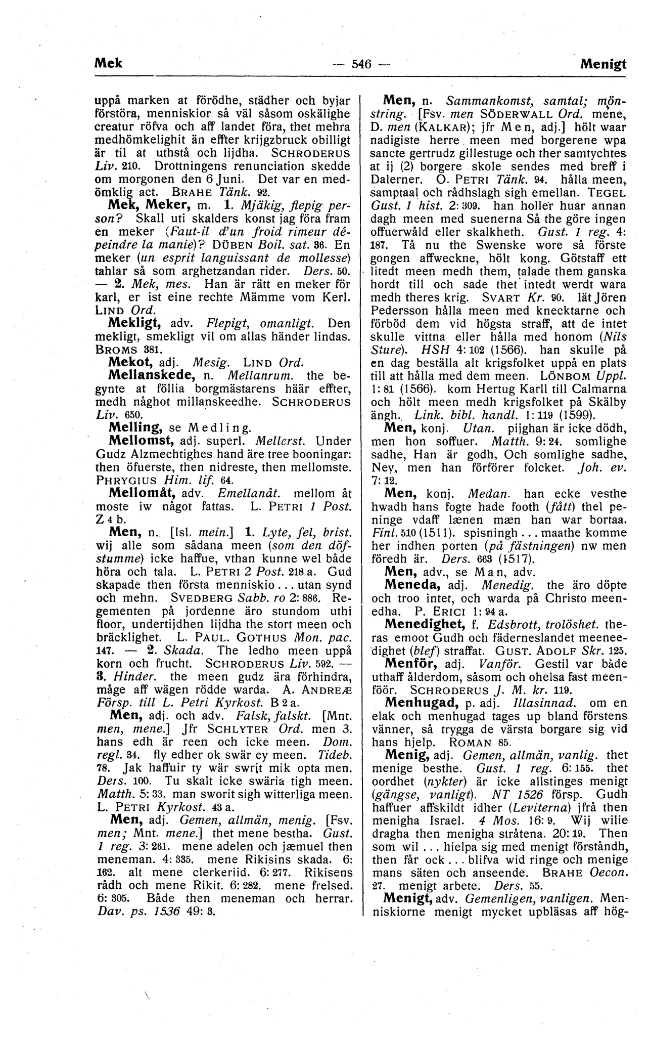 meenee-dighet (blef) straffat. Gust. Adolf Skr. 125.