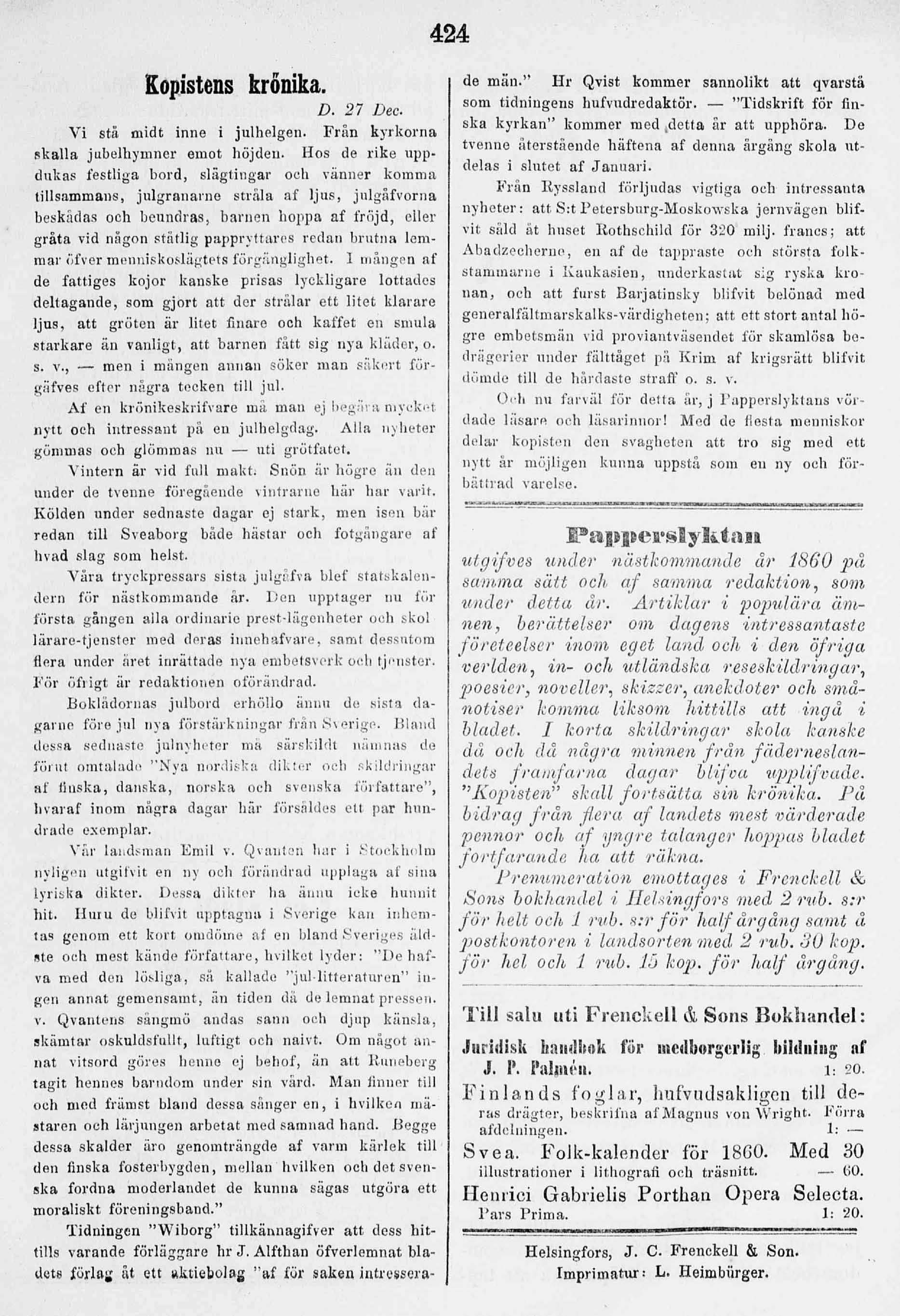 Helsingfors, J. C. Frenckell & Son.