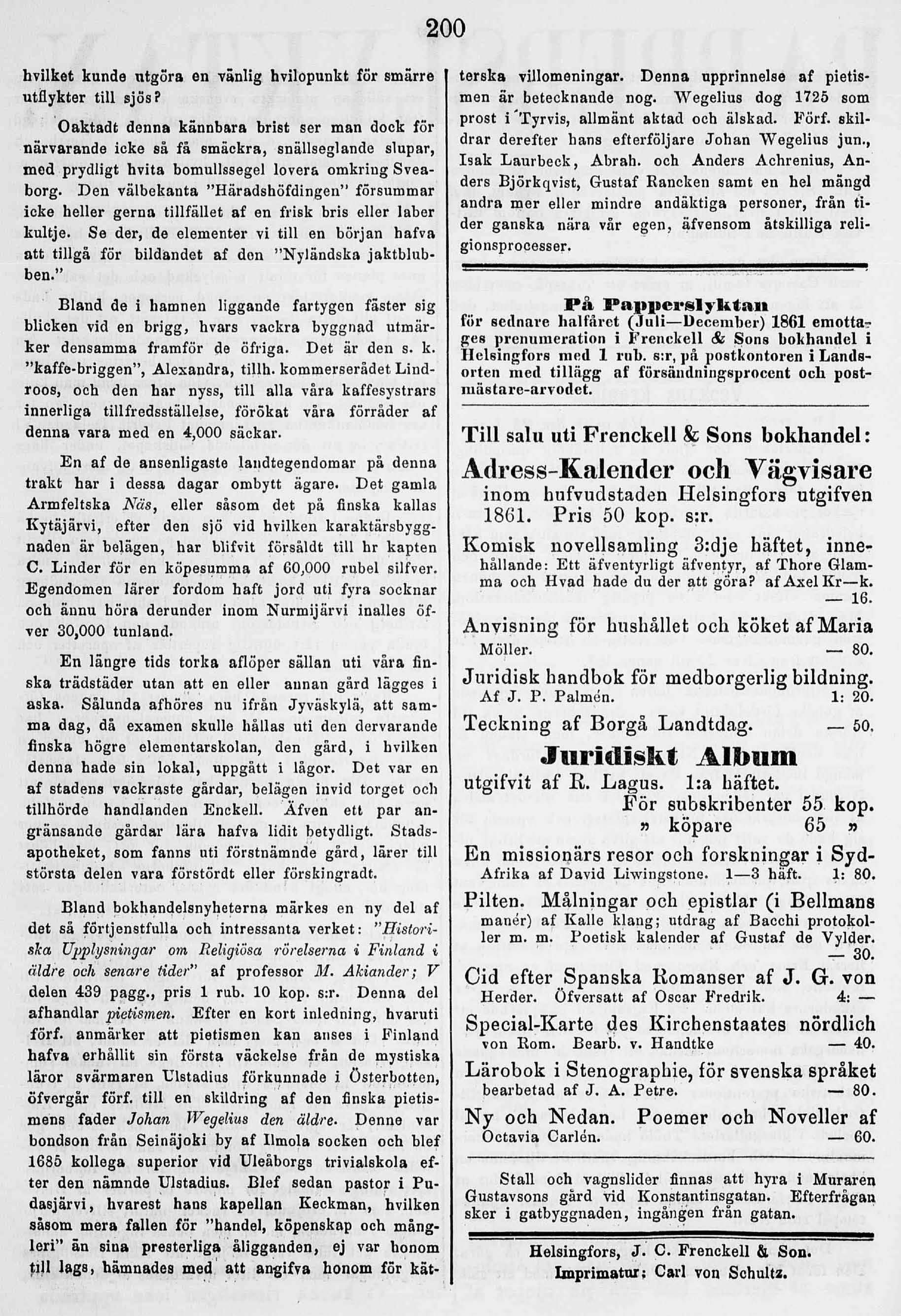 skildrar derefter hans efterföljare Johan Wegelius jun.,