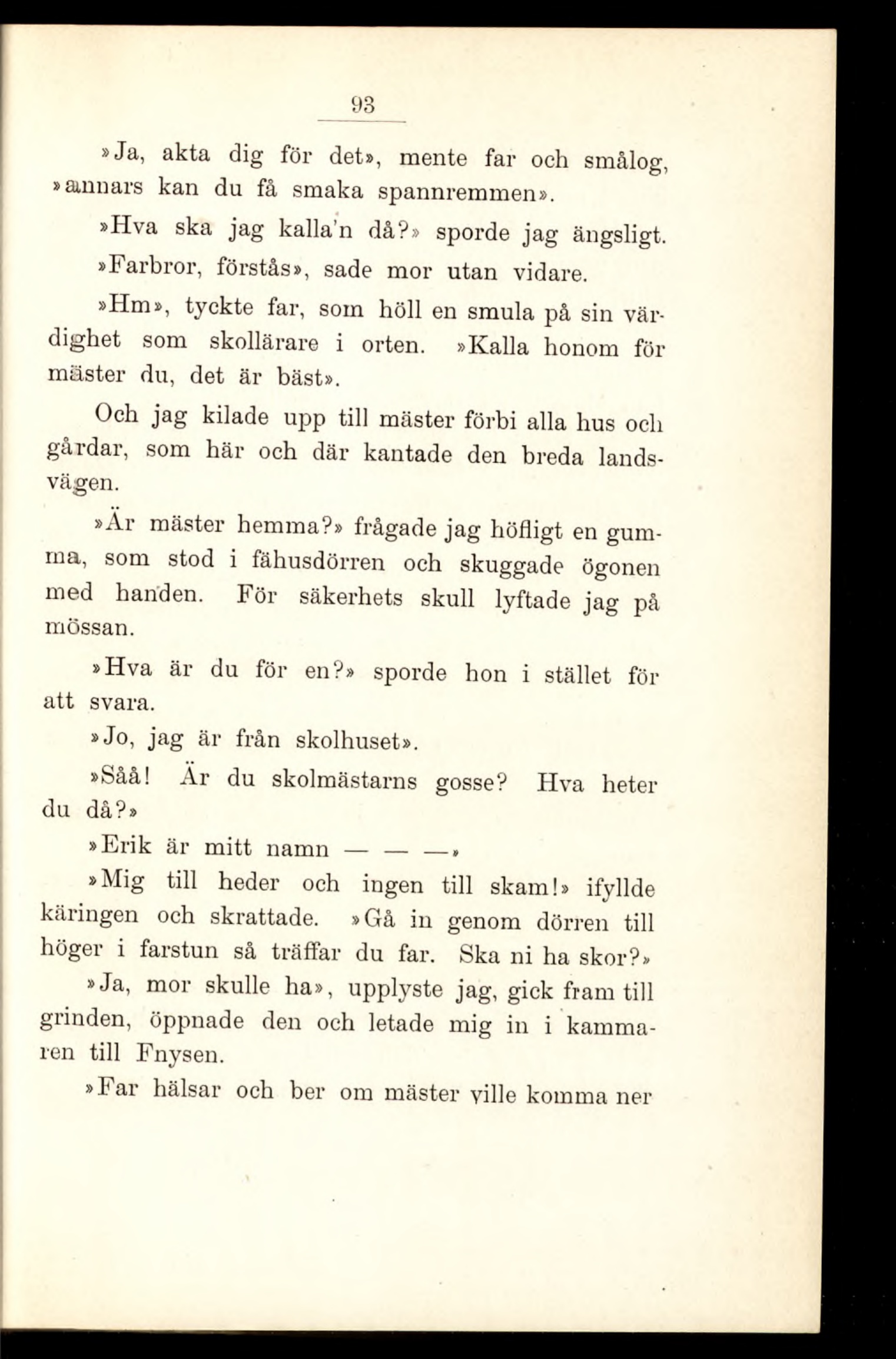 »Såå! Ar du skolmästarns gosse? Hva heter