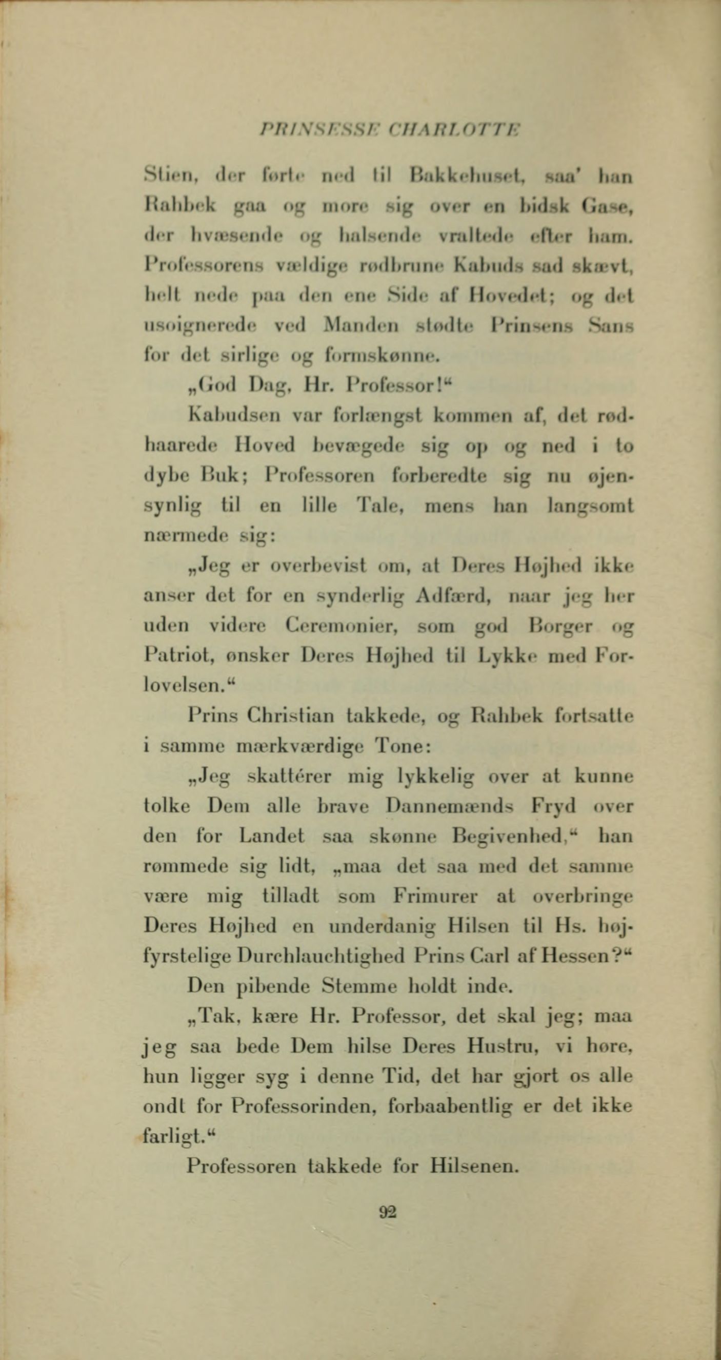 Prins Christian takkede, og Rahbek fortsatte