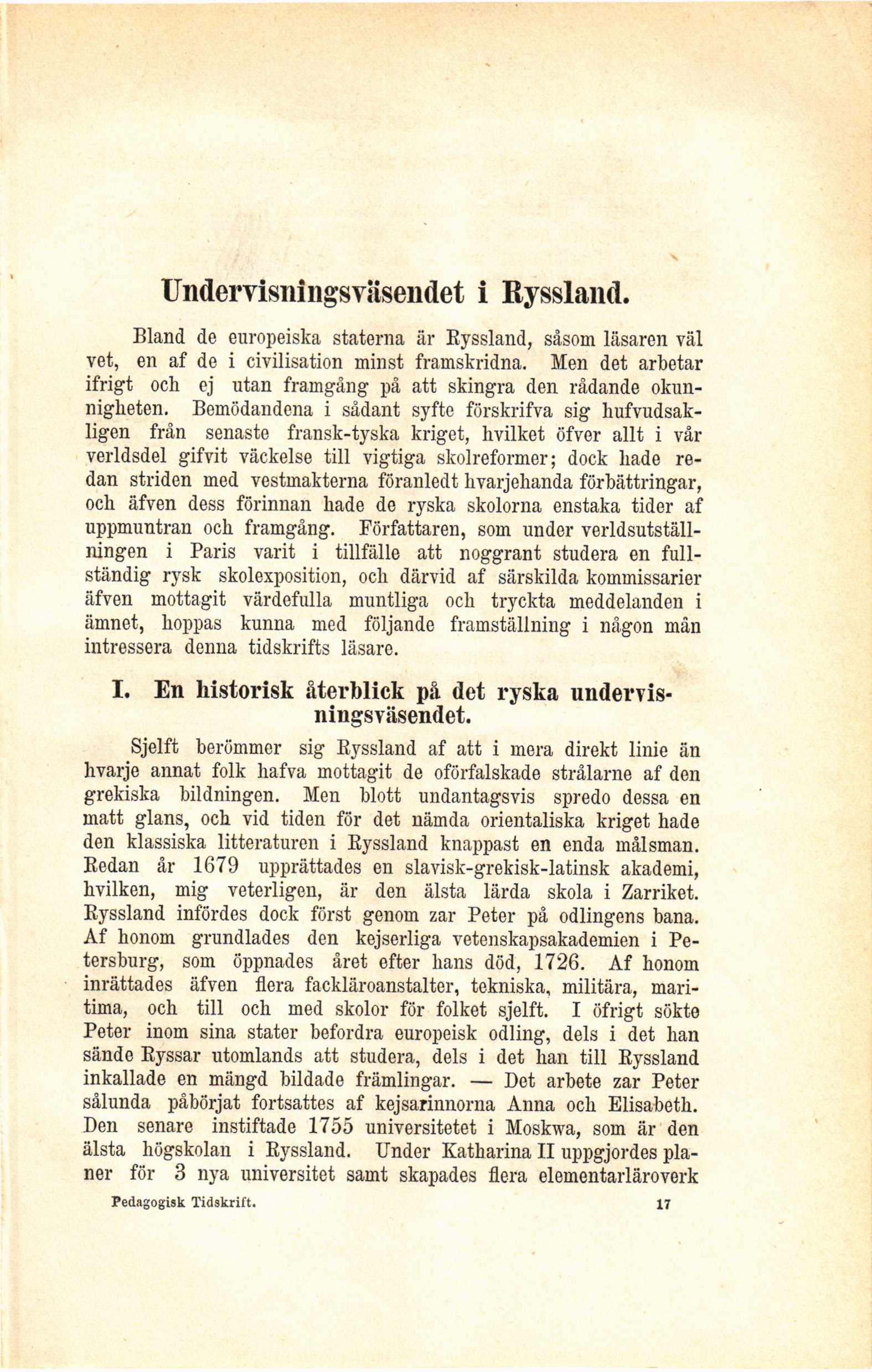 - I. En historisk återblick på det ryska undervisningsväsendet