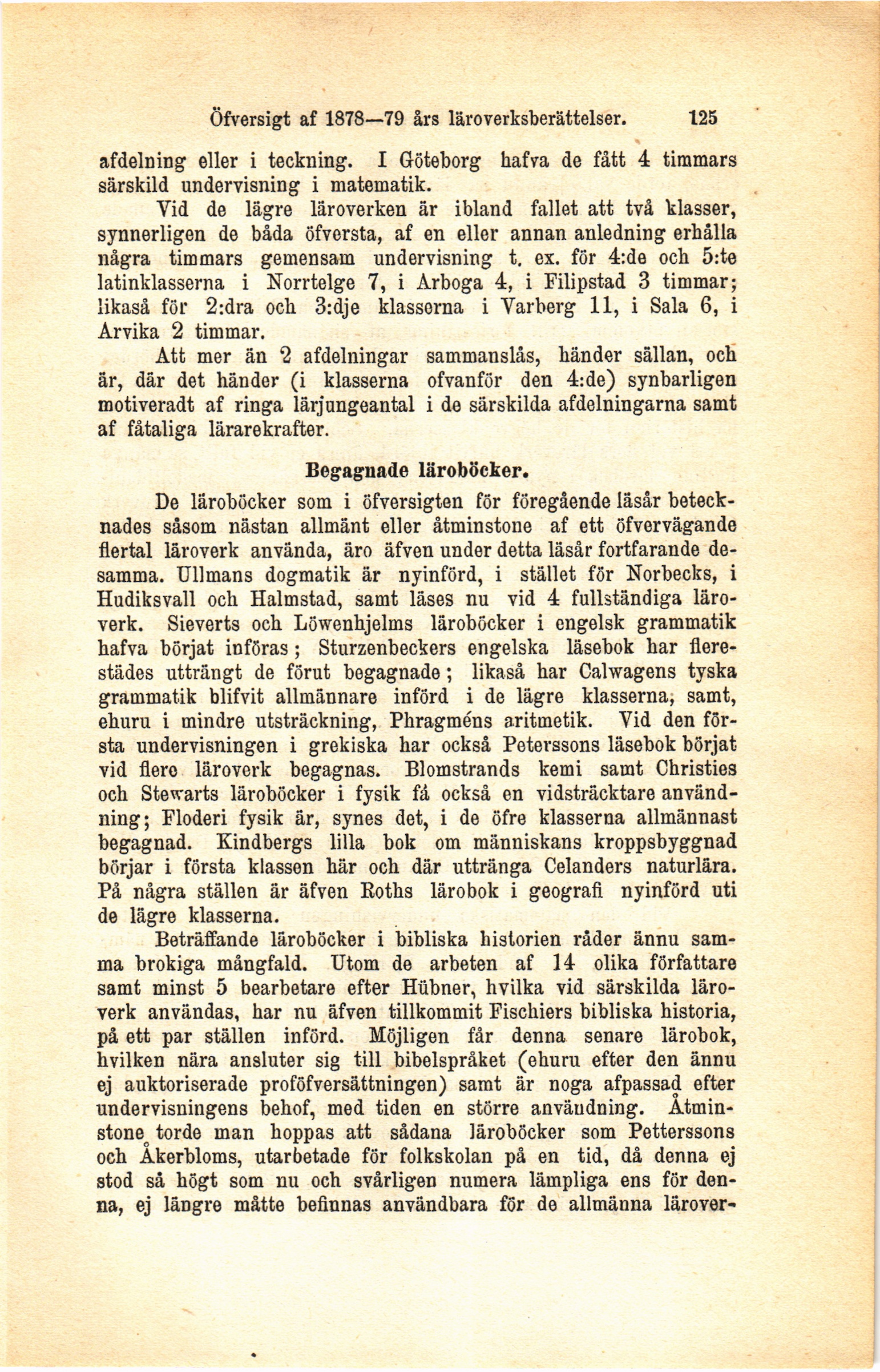 125 öfversigt af 1878 —79 års läroverksberättelser.