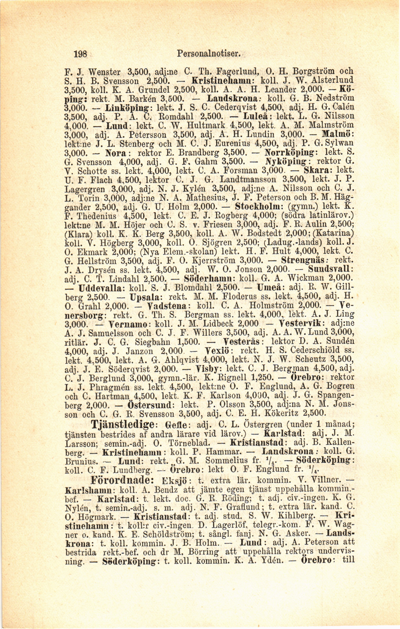 Köping: rekt. M. Barken 3,500. — Landskrona.- koll. G. B. Nedström