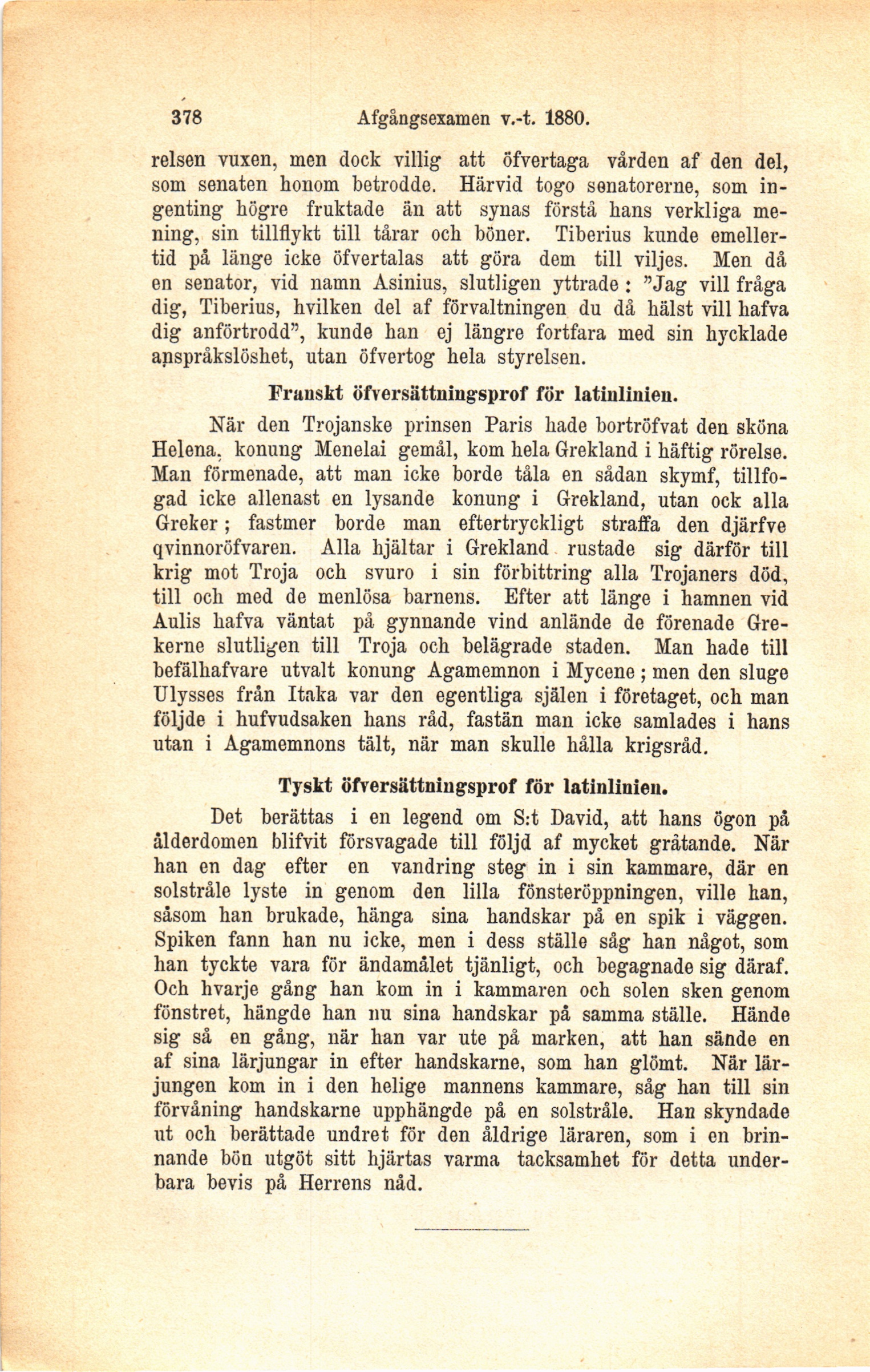 Tyskt öfversättniugsprof för latinlinien.