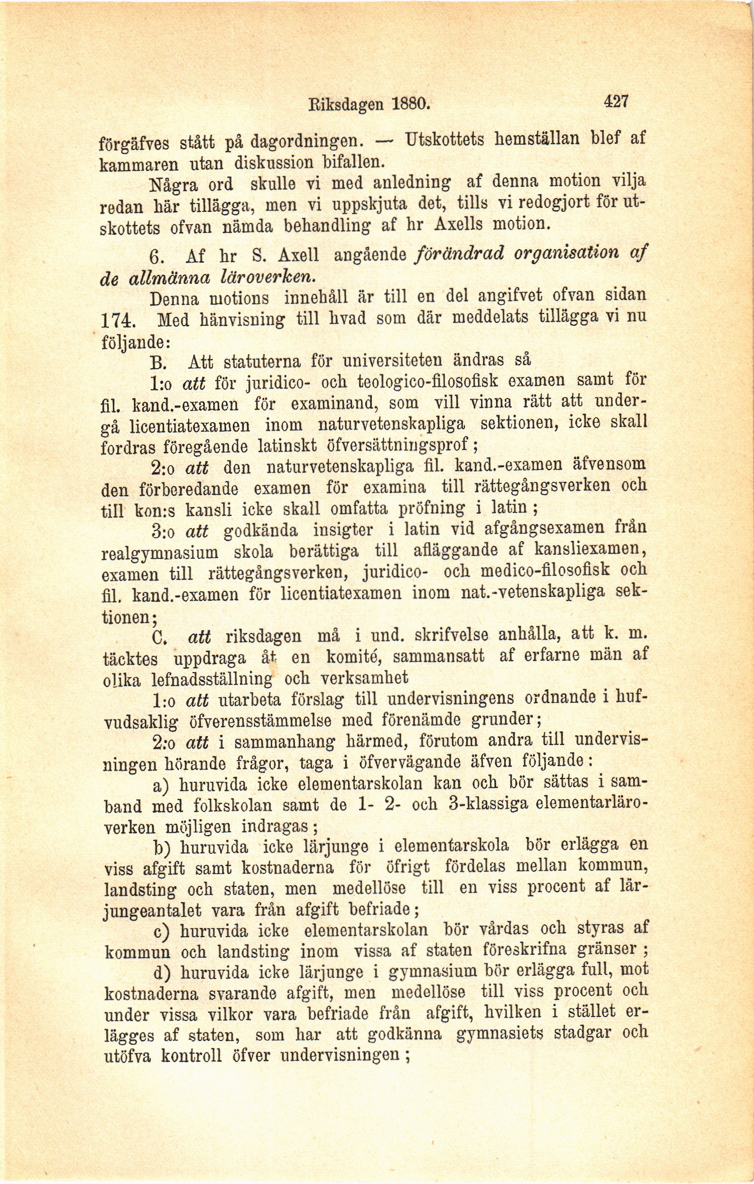 c) huruvida icke elementarskolan bör vårdas och styras af