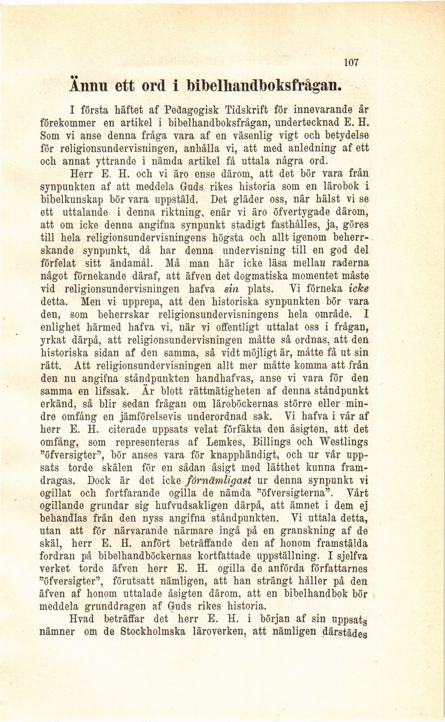 förekommer en artikel i bibelhandboksfrågan, undertecknad E. H.