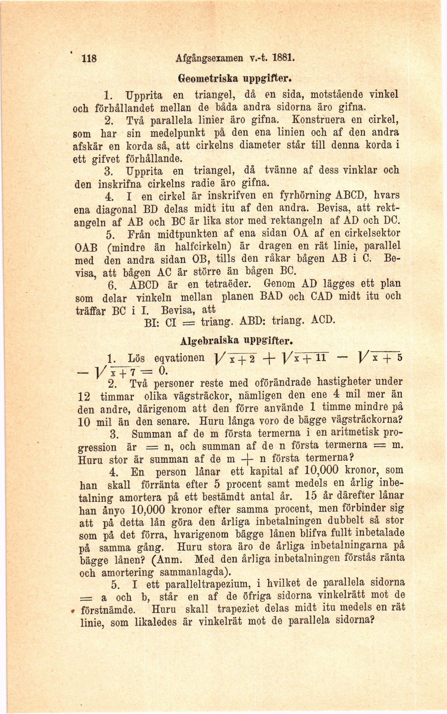 5. I ett paralleltrapezium, i hvilket de parallela sidorna