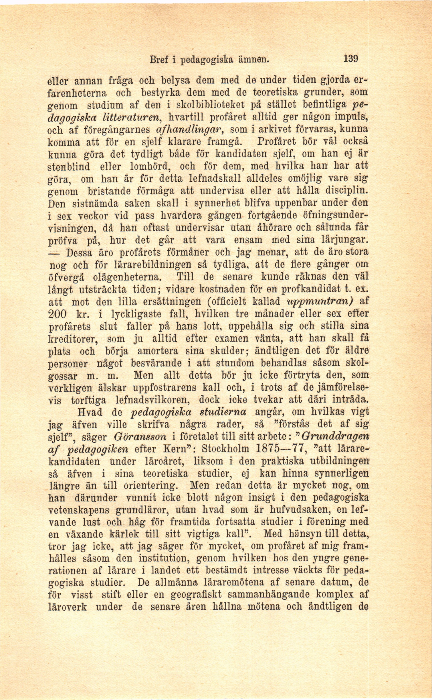 Hvad de pedagogiska studierna angår, om hvilkas vigt