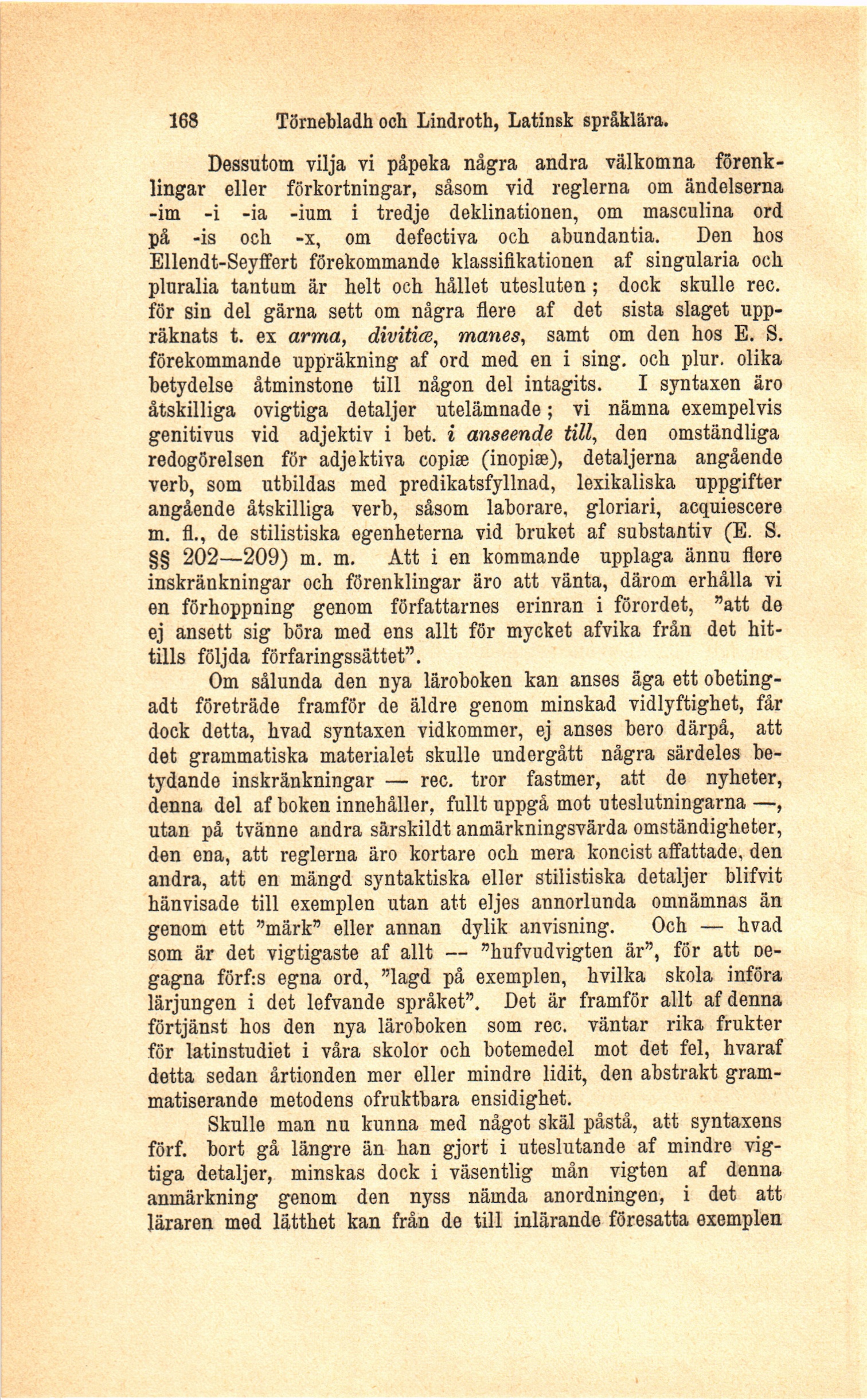 Törnebladh och Lindroth, Latinsk språklära. 168