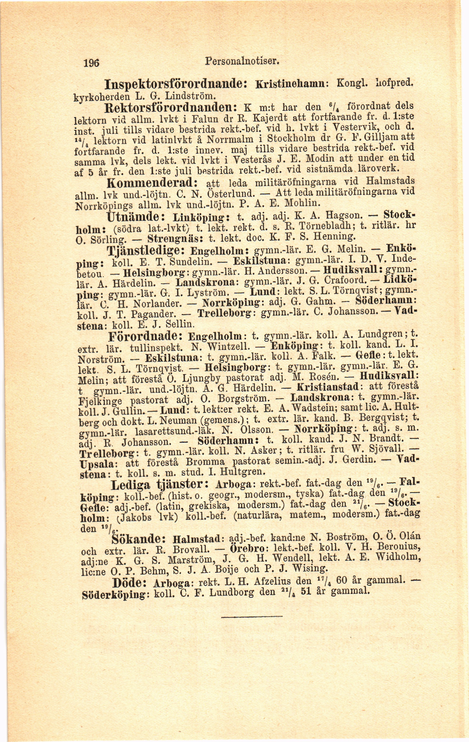 Förordnade: Engelholm: t. gymn.-lär. koll. A. Lundgren; t.