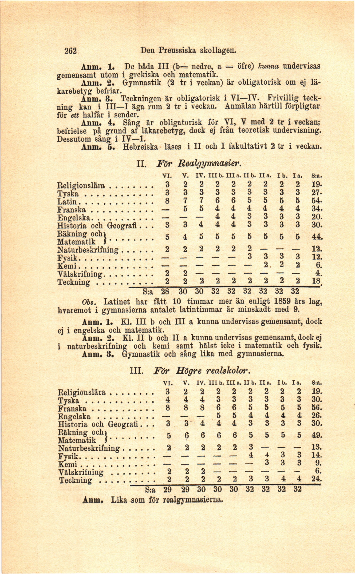 Aum. 5. Hebreiska läses i II och I fakultativt 2 tr i veckan.
