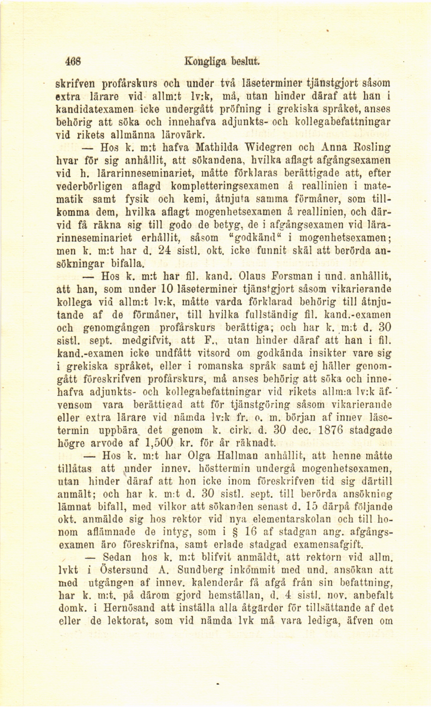 — Hos k. m:t har fil. kand. Olaus Forsman i und. anhållit,