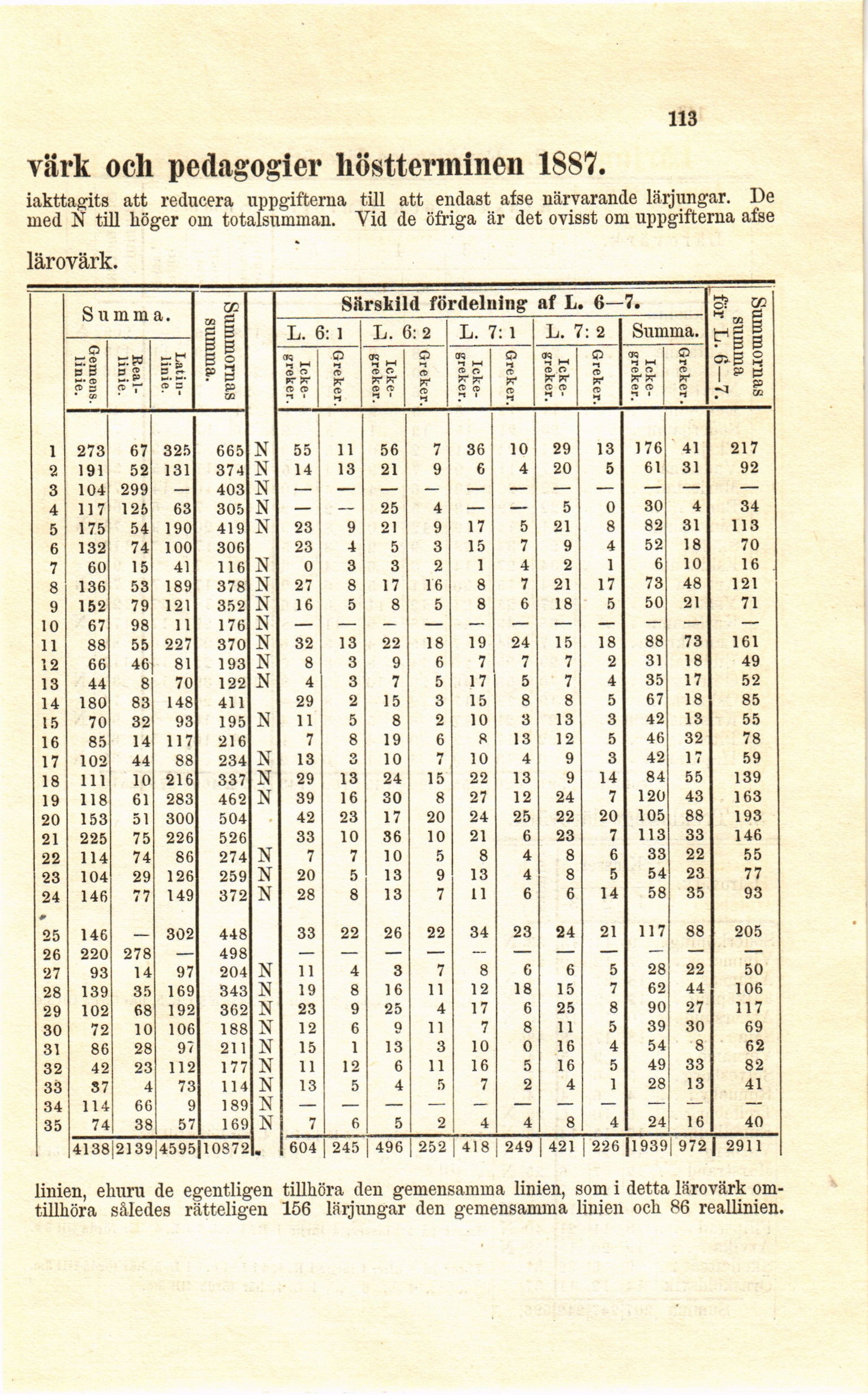 Full resolution (JPEG) - On this page / på denna sida - Häfte 3 - Lärjungarnas antal höstterminen 1887 (Simon Nordström)