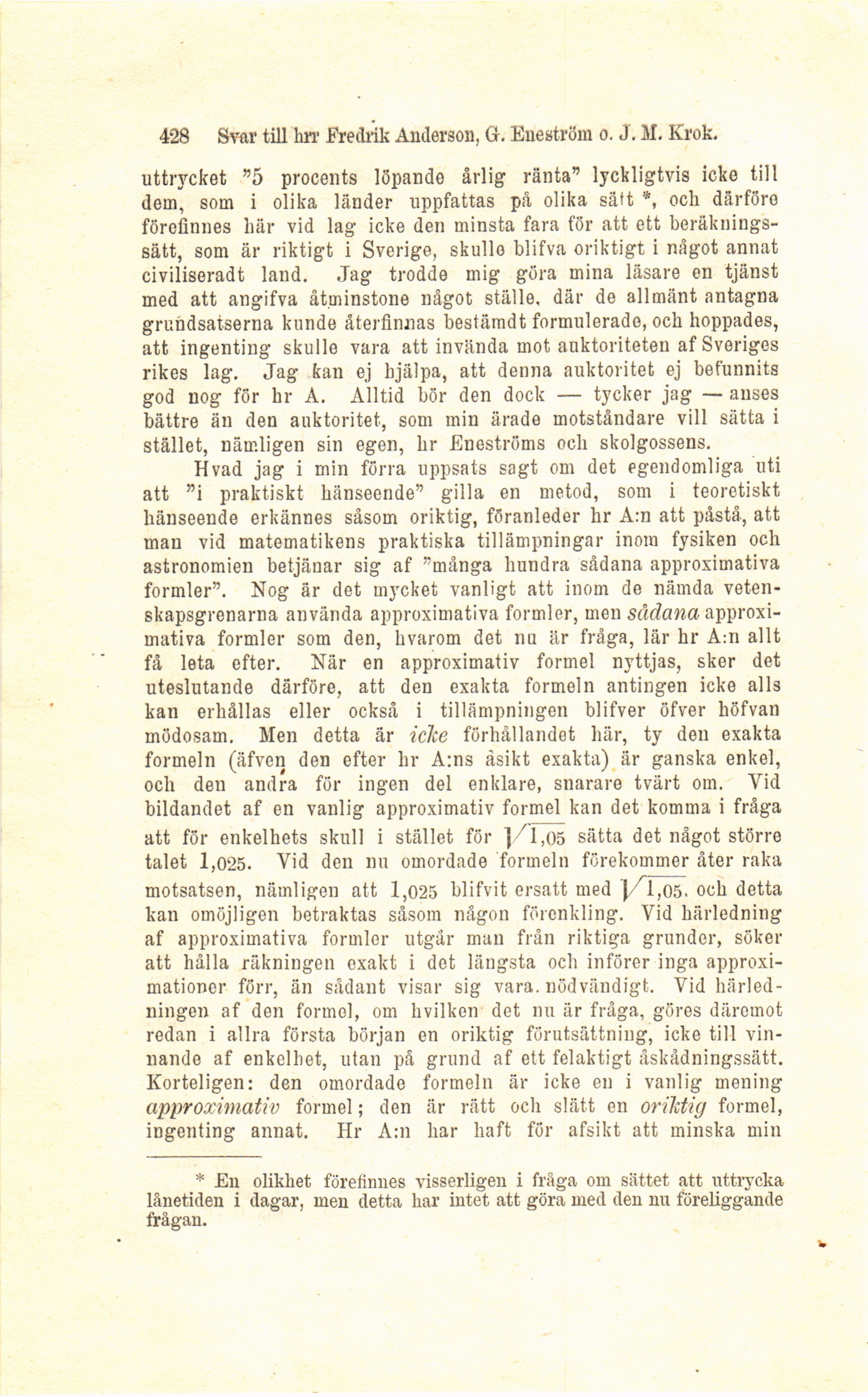 Svar till hrr Fredrik Anderson, (1. Eneström o. J. M. Krok, 428