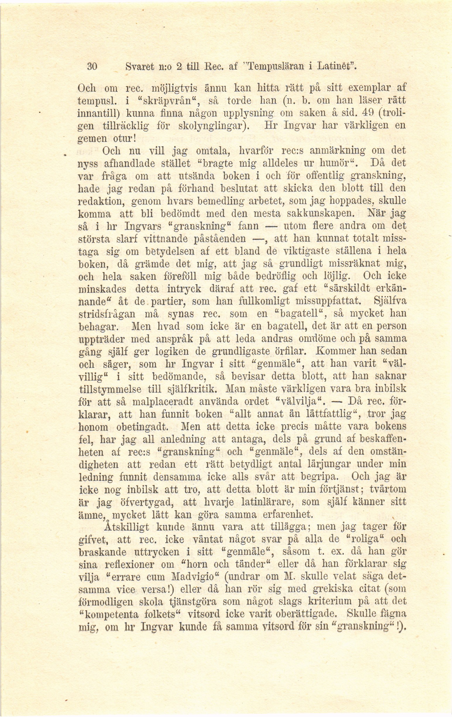 30 Svaret n:o 2 till Rec. af "Tempusläran i Latinét”.