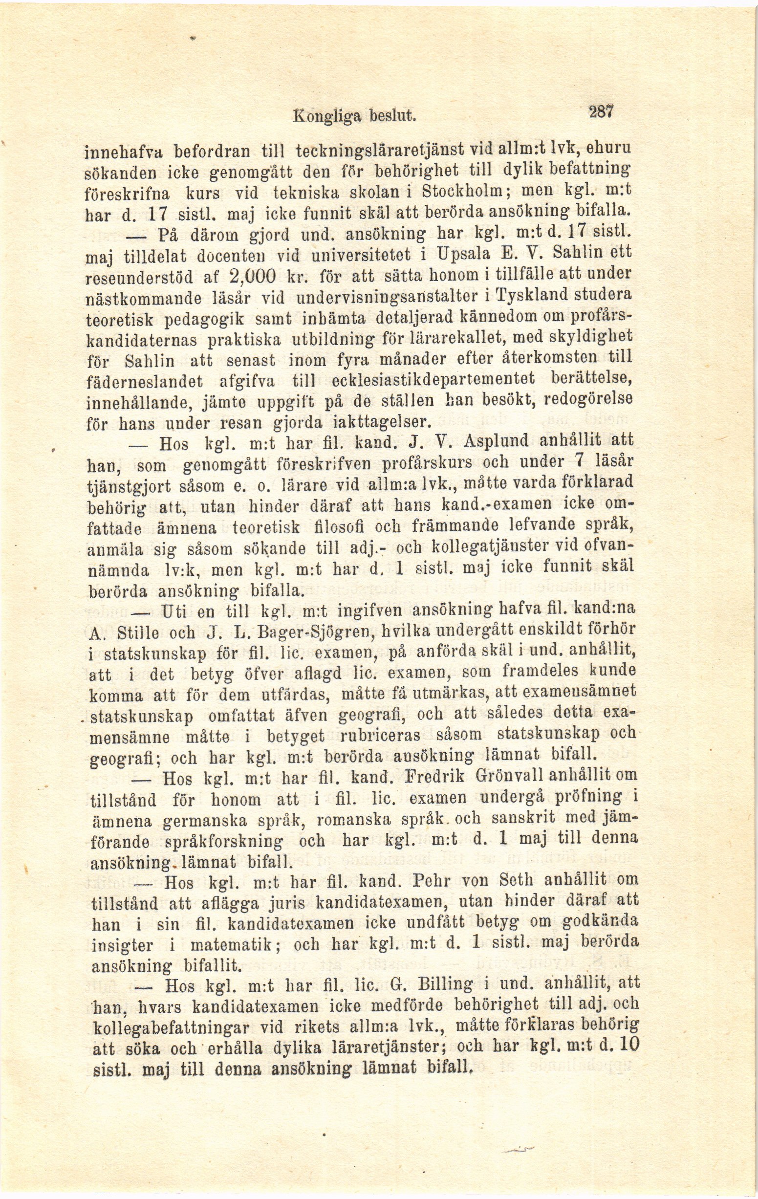 — Hos kgl. m:t har fil. kand. J. V. Asplund anhållit att