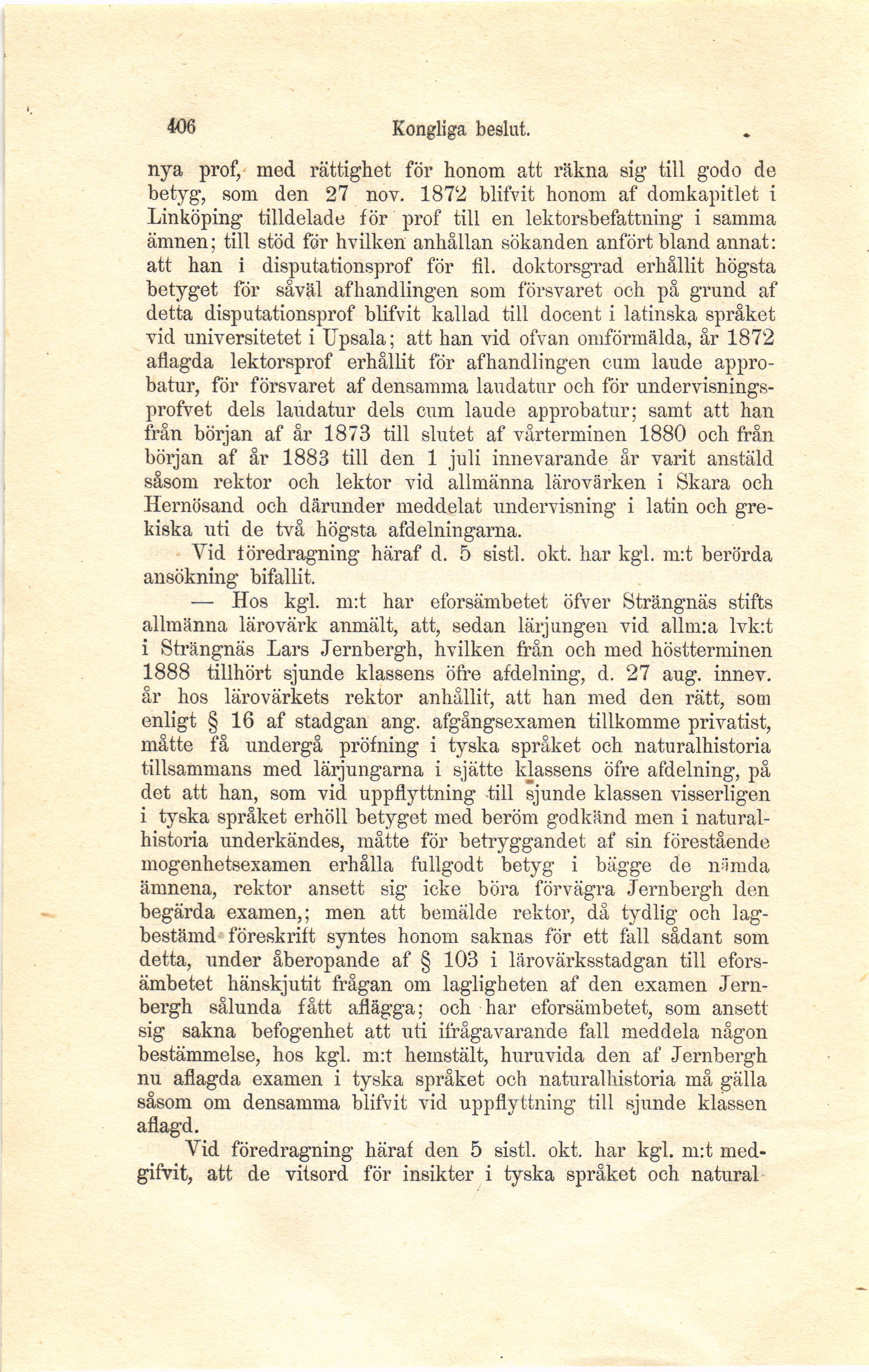 ämnena, rektor ansett sig ieke böra förvägra Jernbergh den