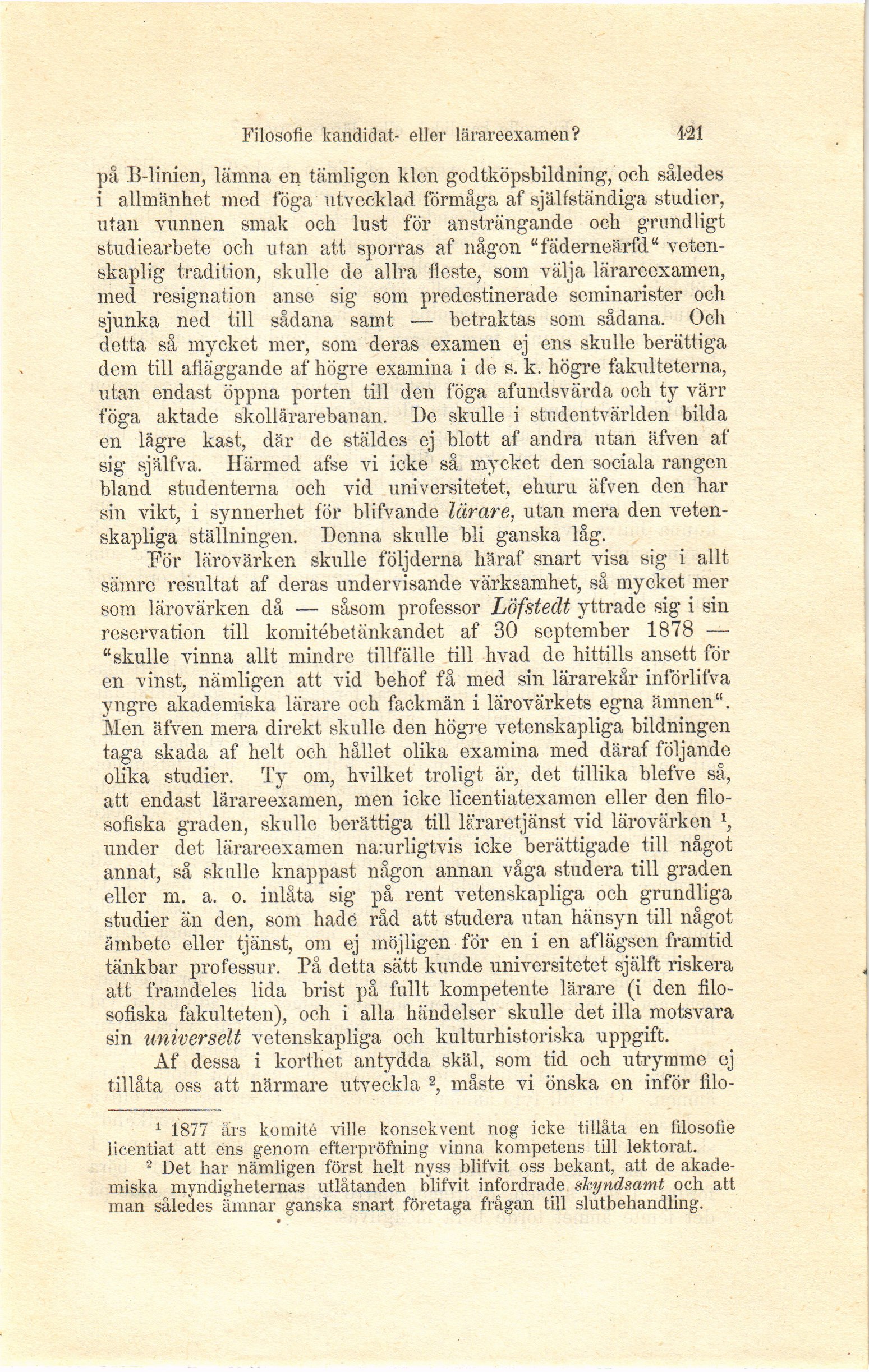 1 1877 ärs komité ville konsekvent nog icke tillåta en filosofie