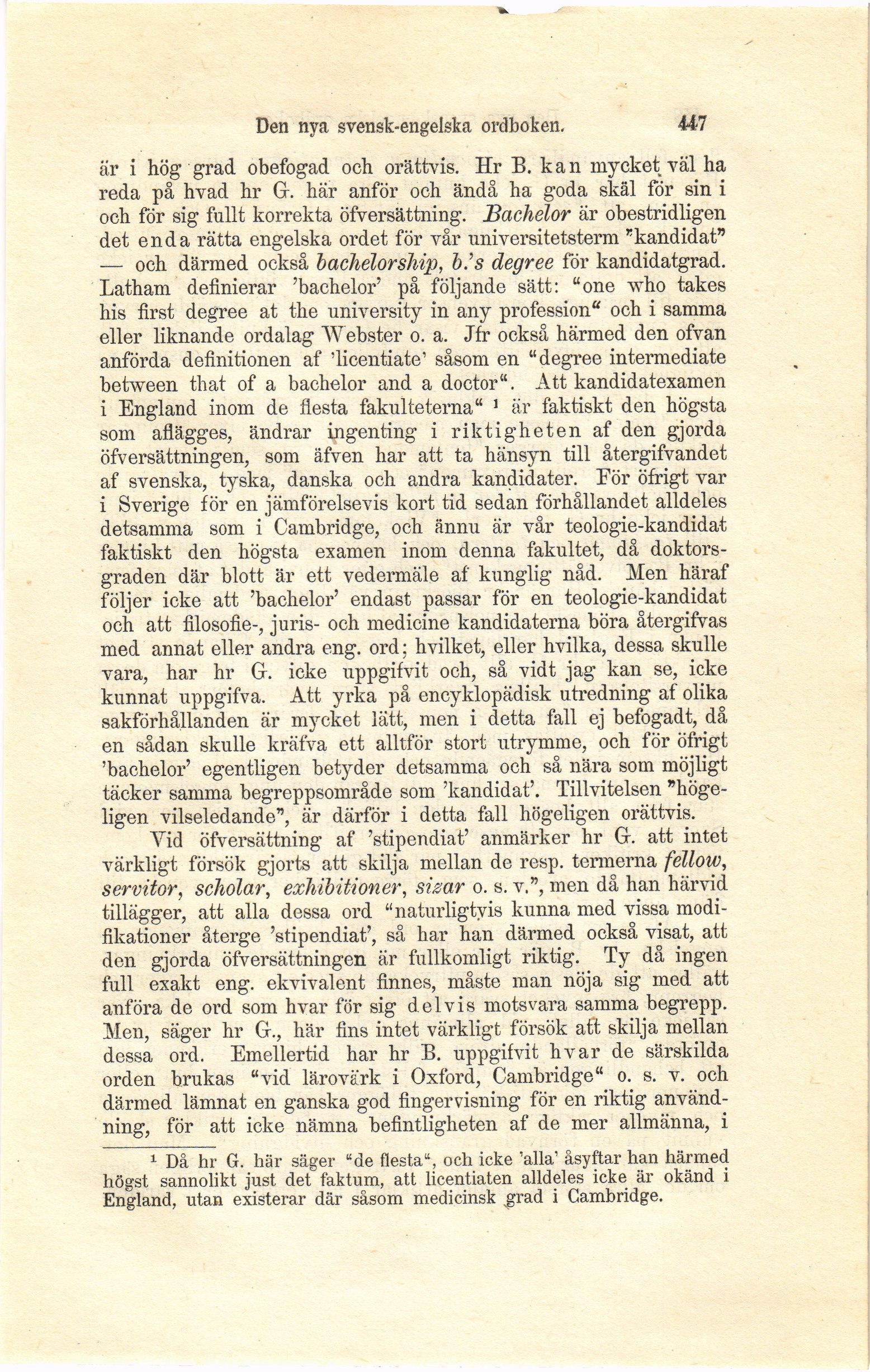 och för sig fullt korrekta öfversättning. Bachelor är obestridligen