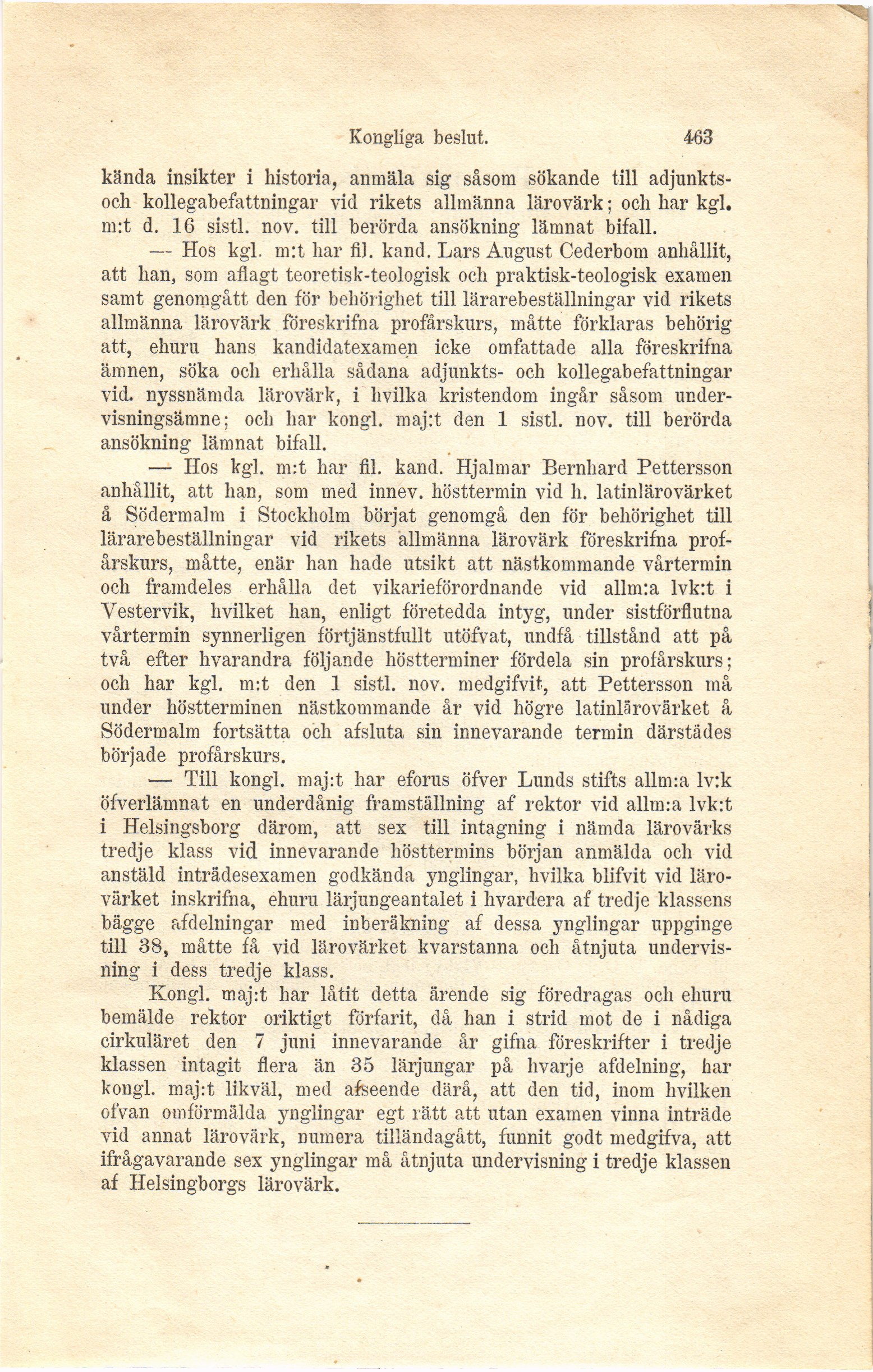 — Hos kgl. m:t har fil. kand. Hjalmar Bernhard Pettersson
