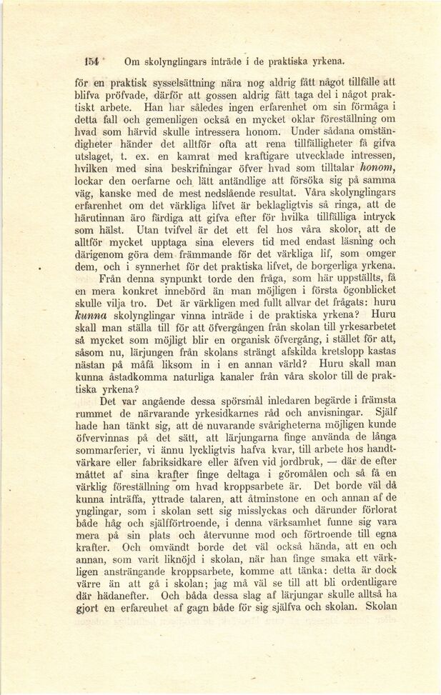 154 Om skolynglingars inträde i de praktiska yrkena.