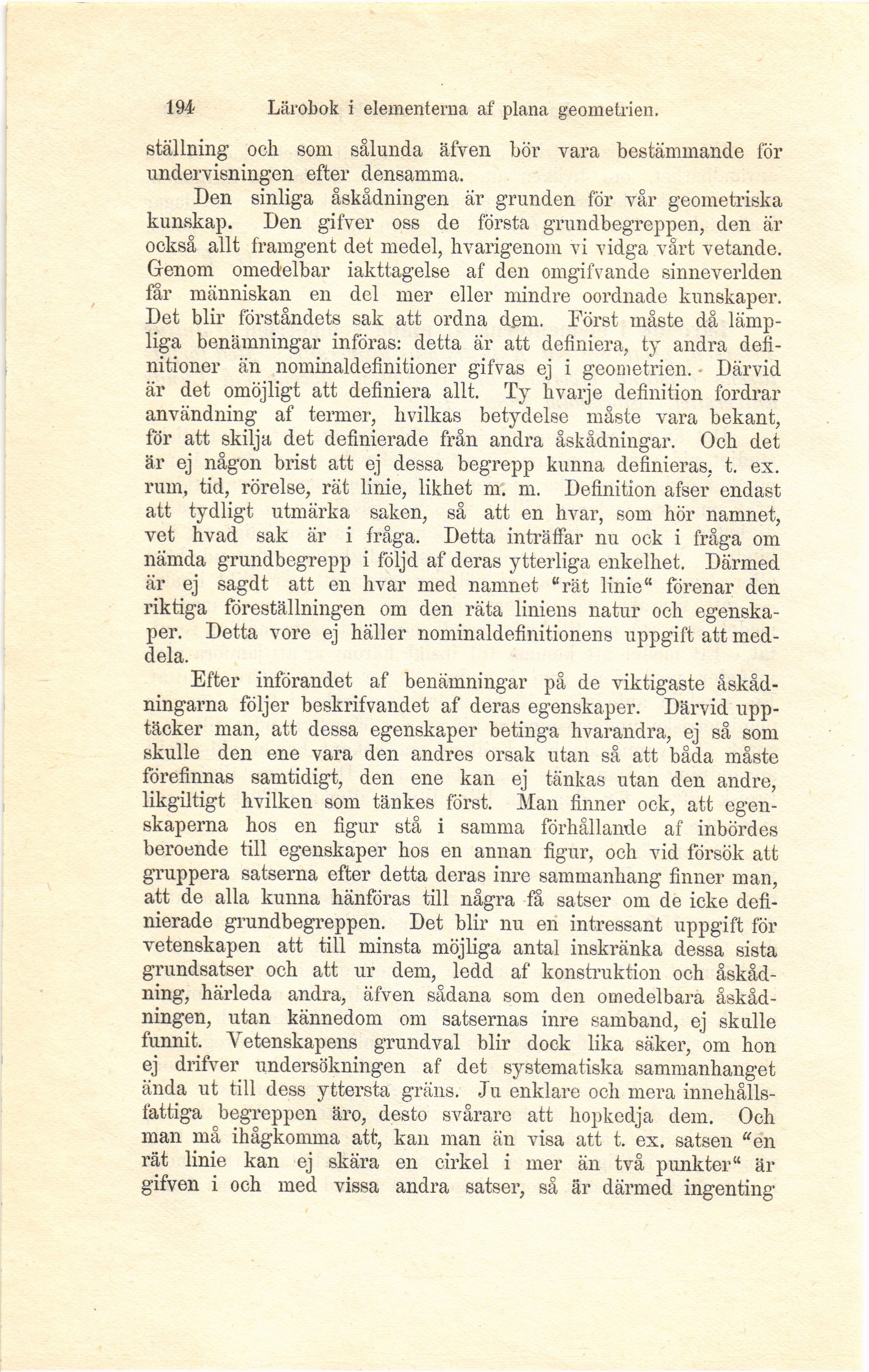 definitioner än nominaldefinitioner gifvas ej i geometrien. Därvid