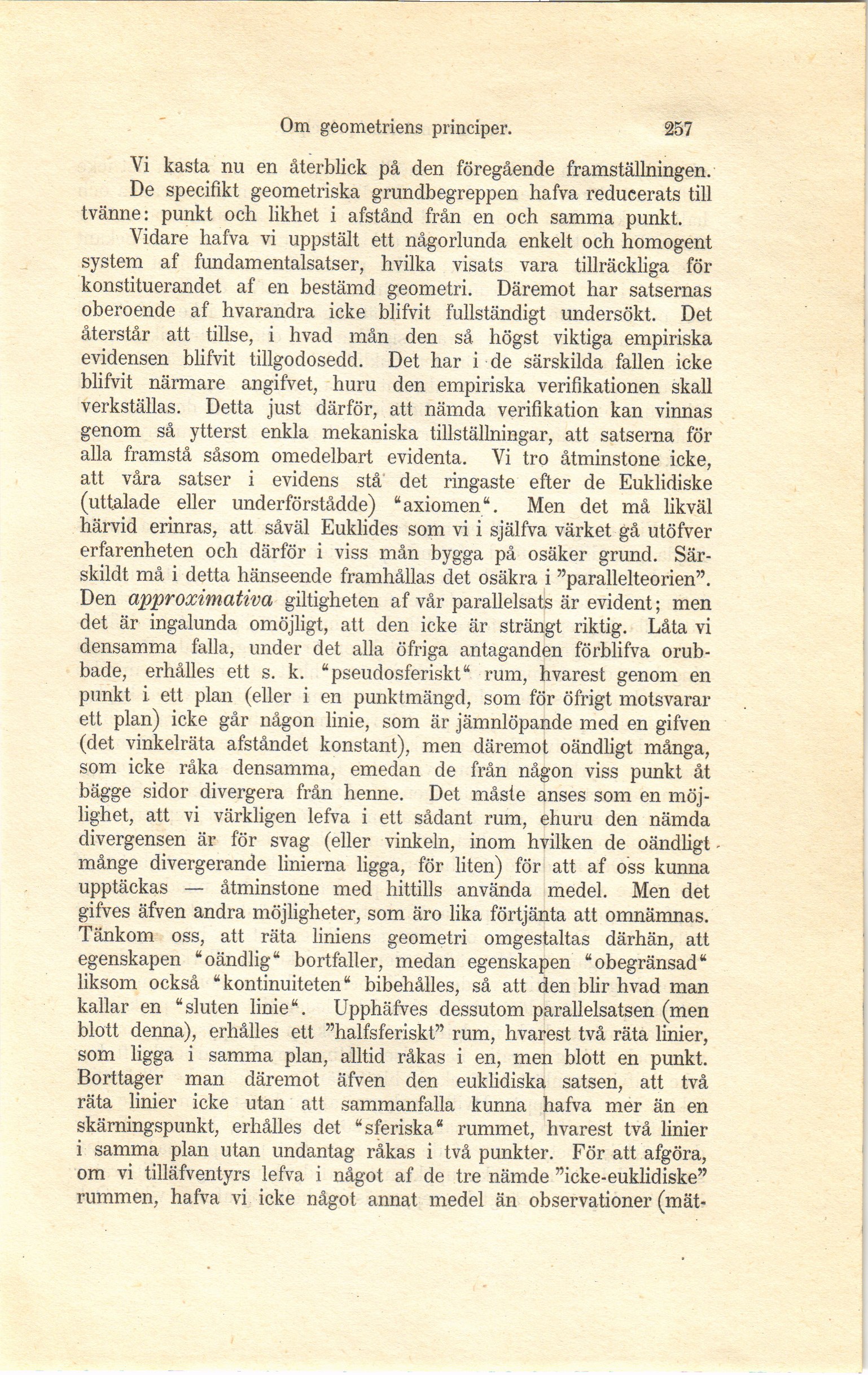 om vi tilläfventyrs lefva i något af de tre nämde ”icke-euklidiske”