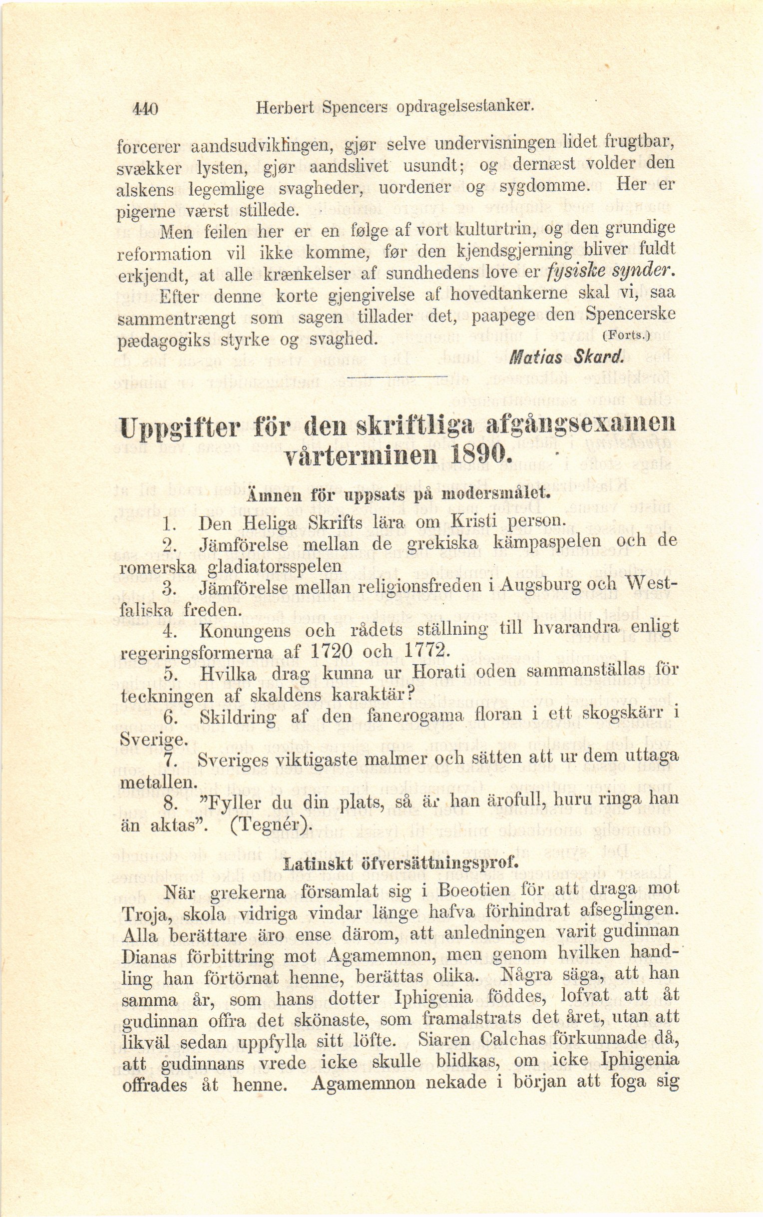 Full resolution (JPEG) - On this page / på denna sida - Häfte 10 - Herbert Spencers opdragelsestanker [Matias Skard] I - Uppgifter för den skriftliga afgångsexamen vårterminen 1890