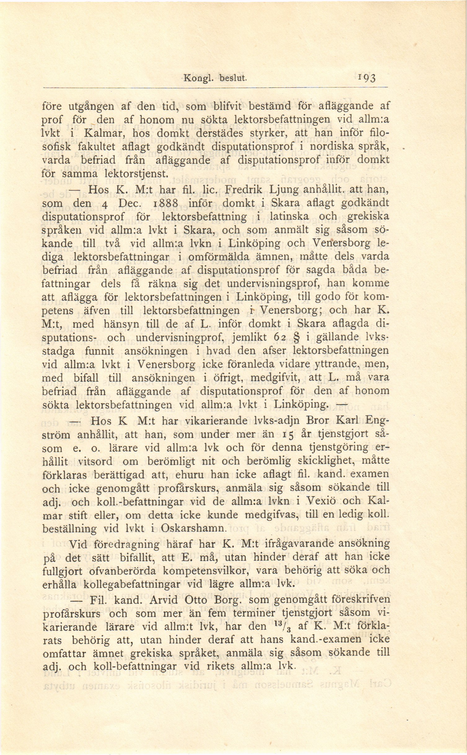 kompetens äfven till lektorsbefattningen r Venersborg; och har K.